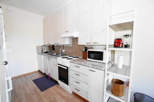erillinen keittiö, laminaattitasot keittiössä, sähköliesi; liesituuletin, astianpesukone (60cm), jääkaappi; pakastin, paljon kaappitilaa; paljon työskentelytilaa
