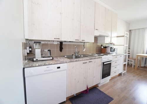 erillinen keittiö, laminaattitasot keittiössä, sähköliesi; liesituuletin, astianpesukone (60cm), jääkaappi; pakastin, paljon kaappitilaa; paljon työskentelytilaa