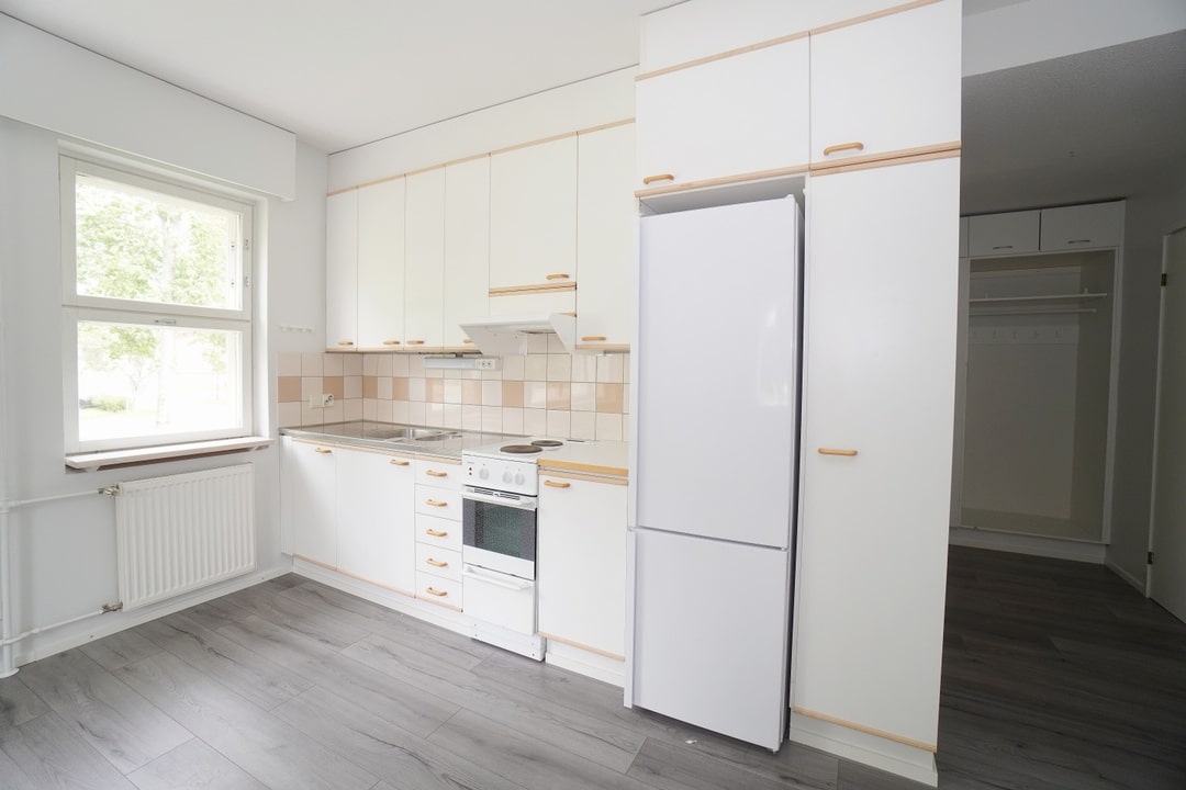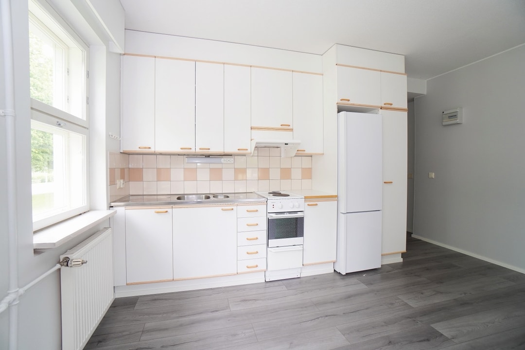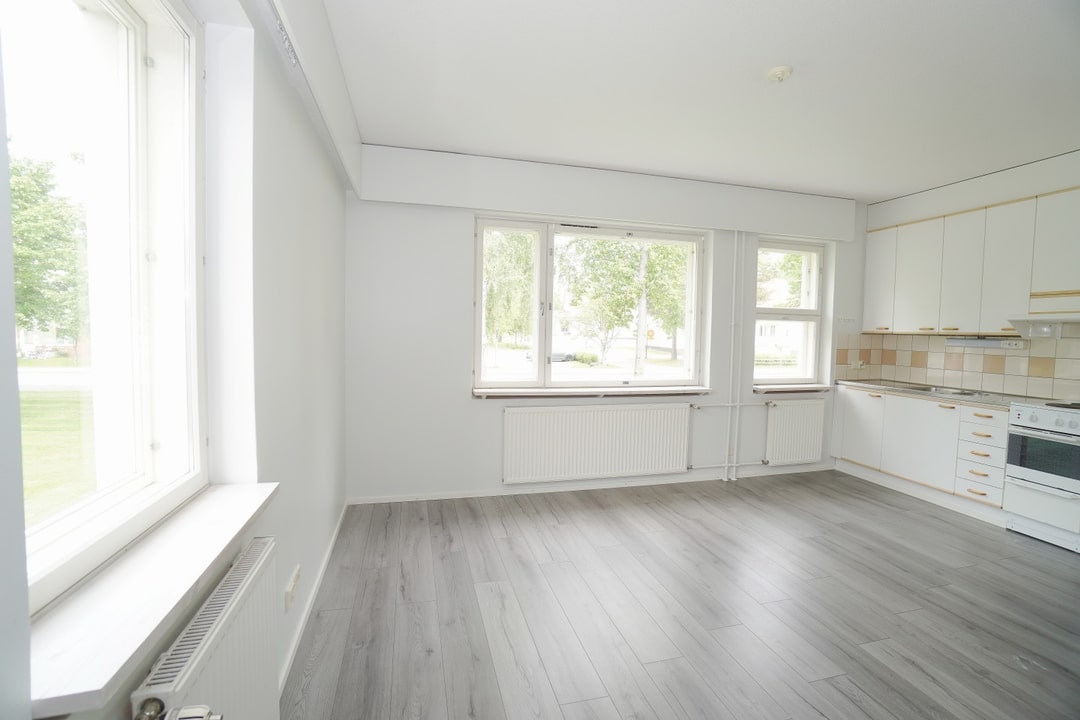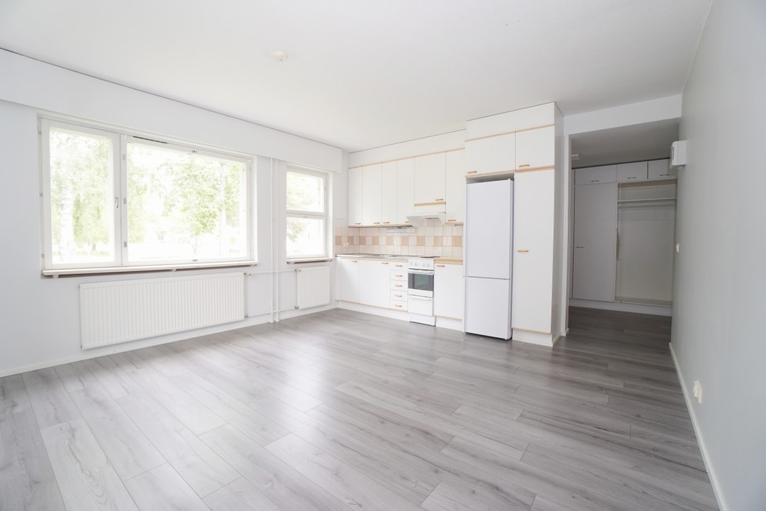 Toisen kerroksen asunto hyvällä sijainnilla lähellä palveluita. Asunnon avokeittiö ja olohuone ovat yhtä tilaa ja asunnossa on kaunis harmaa laminaatti. Kylpyhuone on siistikuntoinen ja pesukoneelle on liitännät. Eteisessä on reilusti kaappitilaa säilytystä ajatellen.