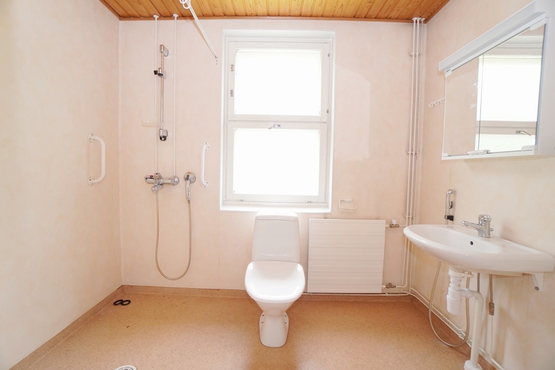 muovimatto; suihkutapetti, peilikaappi, suihku, pesukonevalmius, avattava ikkuna