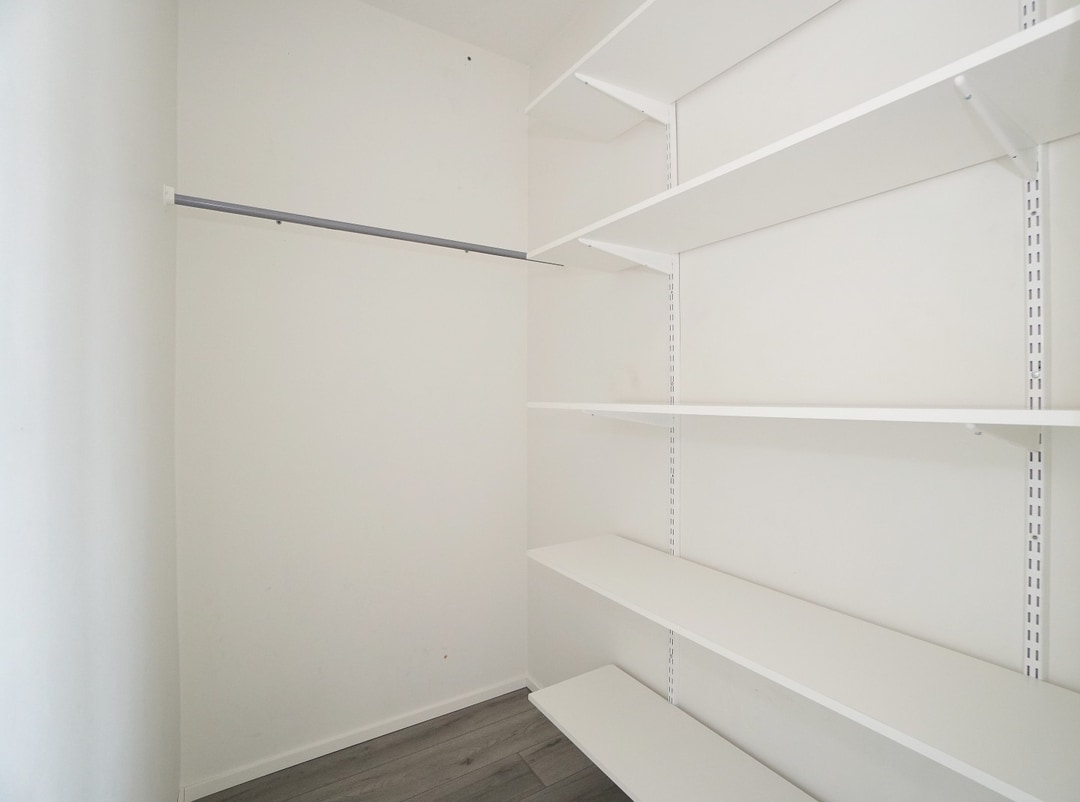 Säilytystilaa asuntoon tuo kaksi vaatehuonetta, toinen suoraan makuuhuoneen yhteydessä ja toinen eteiskäytävällä.