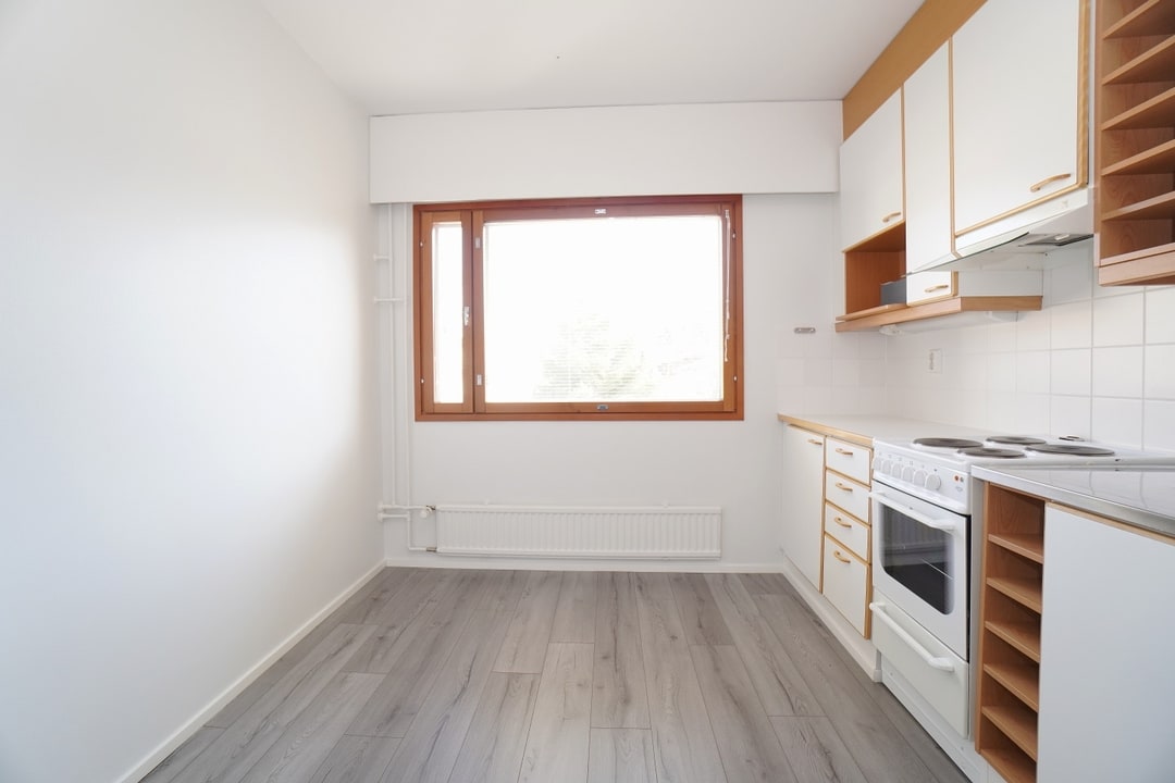 Tämä läpitalon asunto on kauttaaltaan siistissä kunnossa. Tilavassa olohuoneessa on tilaa suurellekin sohvalle ja olohuoneen yhteydessä on käynti parvekkeelle, josta avautuu puistoiset näkymät. Koko asunnossa on kaunis harmaa laminaattilattia.