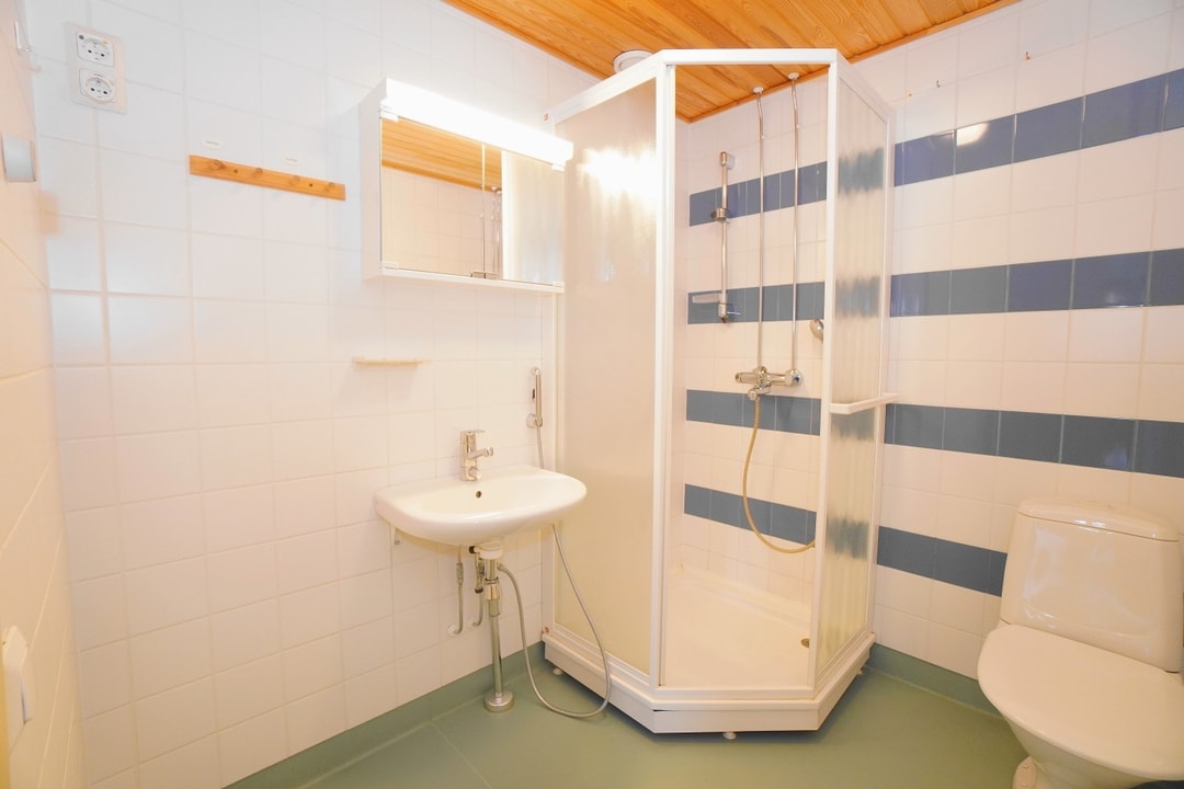 Keittiössä on hyvin kaappitilaa ja varaus astianpesukoneelle tarvittaessa. Keittiön yhteyteen mahtuu ruokaryhmä. Makuuhuone on hyvän kokoinen ja suurempikin parisänky mahtuu makuuhuoneeseen vaivatta. Siistissä kylpyhuoneessa on hyvä paikka pesukoneelle.