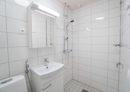 laattalattia; laattaseinä, peilikaappi, suihku, pesukonevalmius, lattialämmitys