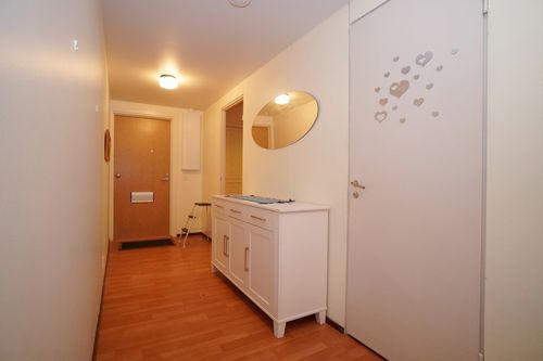 Valoisa koti sijaitsee ensimmäisessä kerroksessa, joten kulku asuntoon on vaivatonta.