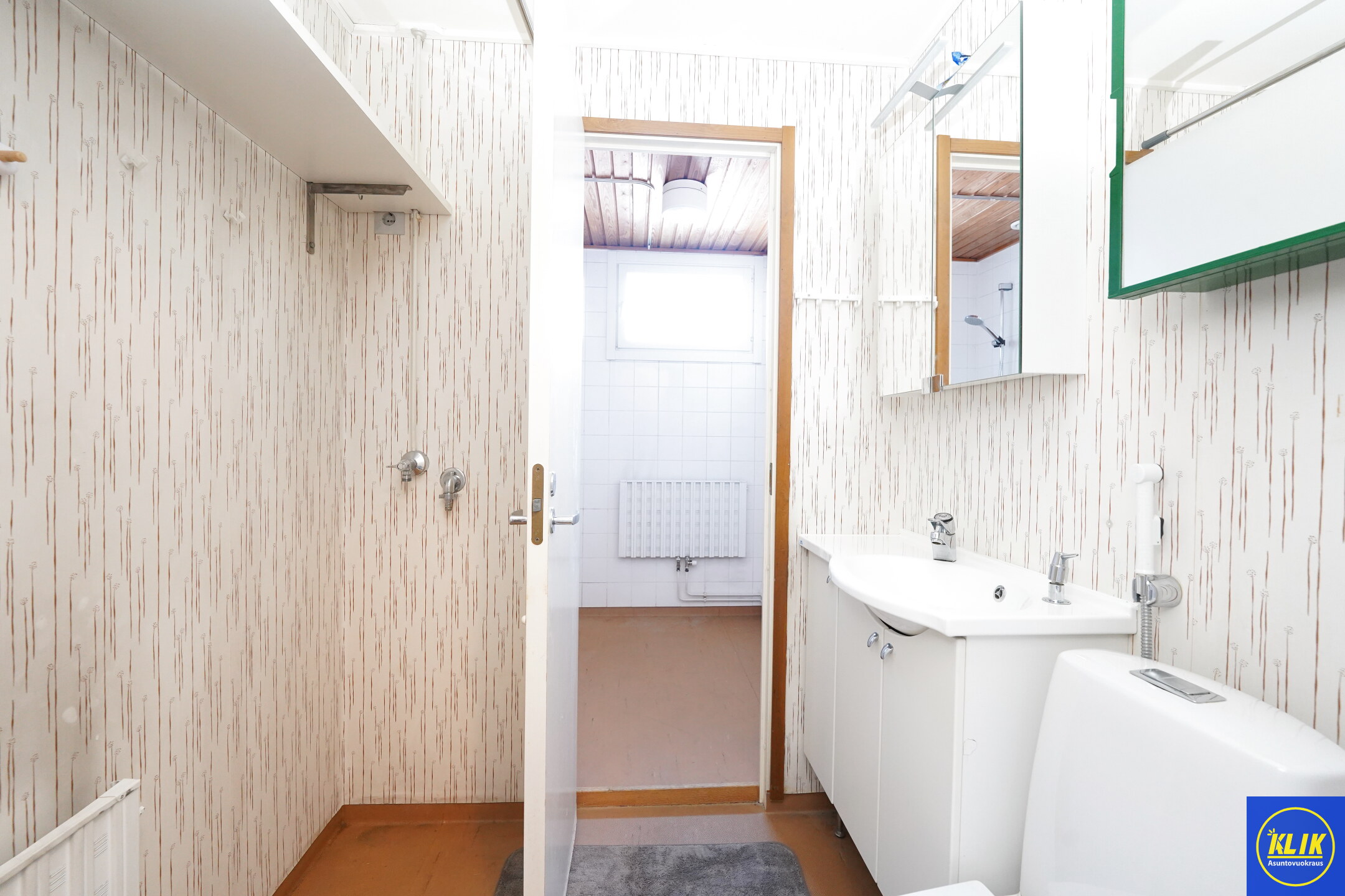 muovimatto; suihkutapetti; laattaseinä, , allaskaappi; peilikaappi, suihku, , pesukonevalmius, oma sauna; kylpyhuoneessa avattava ikkuna