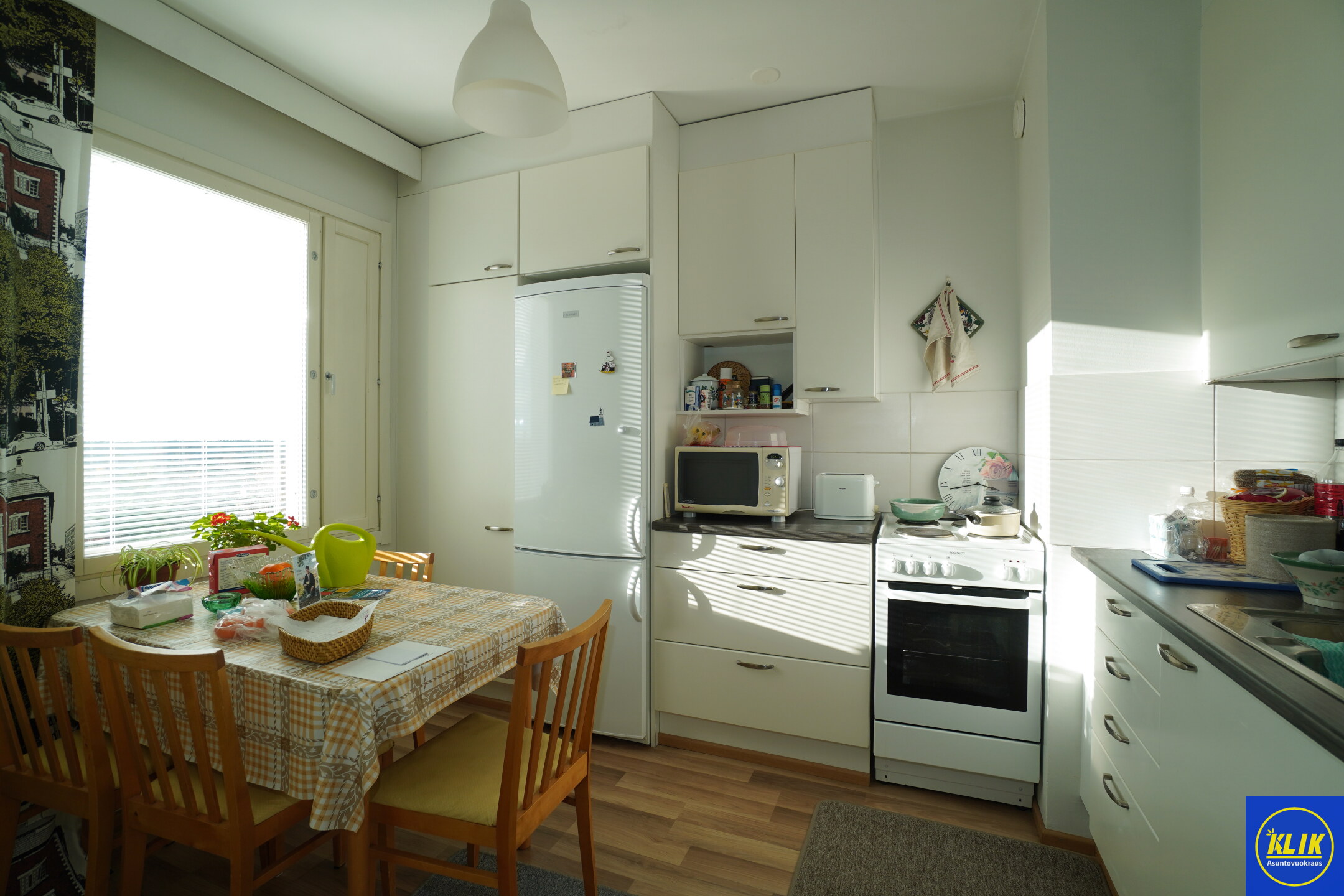 erillinen keittiölaminaattitasot keittiössä, sähköliesi, astianpesukone (60cm), jääkaappipakastin, tilaa isolle ruokapöydälle; paljon kaappitilaa; paljon työskentelytilaa; mikrohylly