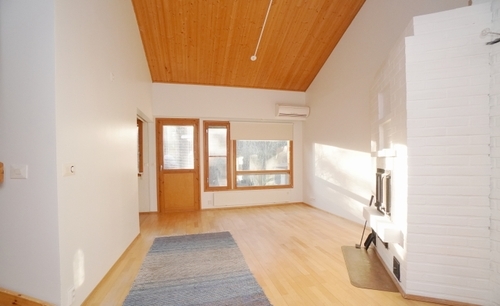 Olohuoneen yhteydessä on varaava takka ja yhdessä ilmalämpöpumpun kanssa lämmityskustannukset pysyvät maltillisena. Korkeat viistot sisäkatot luovat tilan tuntua asuntoon. Olohuoneesta on käynti terassille, josta avautuu kaunis metsämaisema ja takapiha.