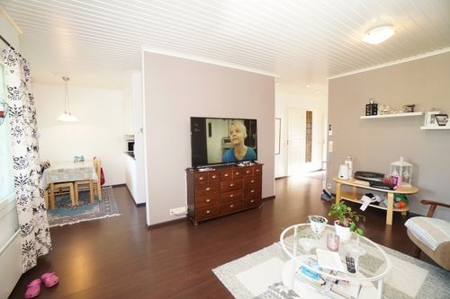 Kalaholmasta vapautumassa läpitalon kaksio, jossa on erinomainen pohjaratkaisu ja tilavat huoneet. Olohuoneesta on käynti osittain katetulle terassille. Terassille mahtuvat vaivatta grilli ja ulkokalusteet. Omaa pihaakin on viherpeukaloille kivasti tarjolla. Suojaisa aurinkoinen takapiha takaa myös omaa rauhaa.