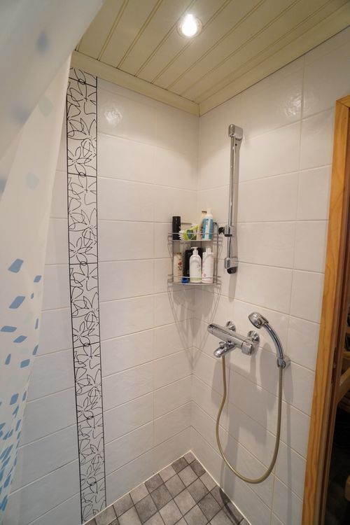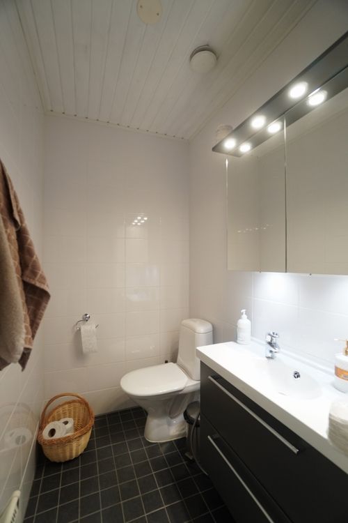 Kylpyhuoneessa on tilaa pesutornille ja myös täältä löytyy kivasti kaappitilaa. Kylpyhuone on todella hyvässä kunnossa ja sen yhteydessä oma sauna. Erillinen wc on myös hiljattain remontoitu.