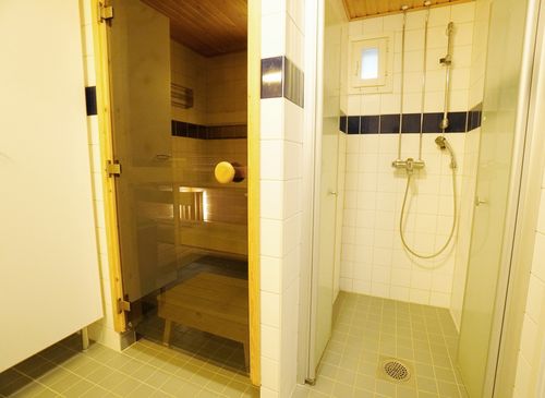 Hiljattain remontoituun kylpyhuoneeseen mahtuu vaikka pesutorni. Pyyhekuivain tuo lisätilaa pyykkien kuivaamiseen, säilytystilana kylpyhuonekaapisto. Oma sauna kuuluu tähän kotiin.