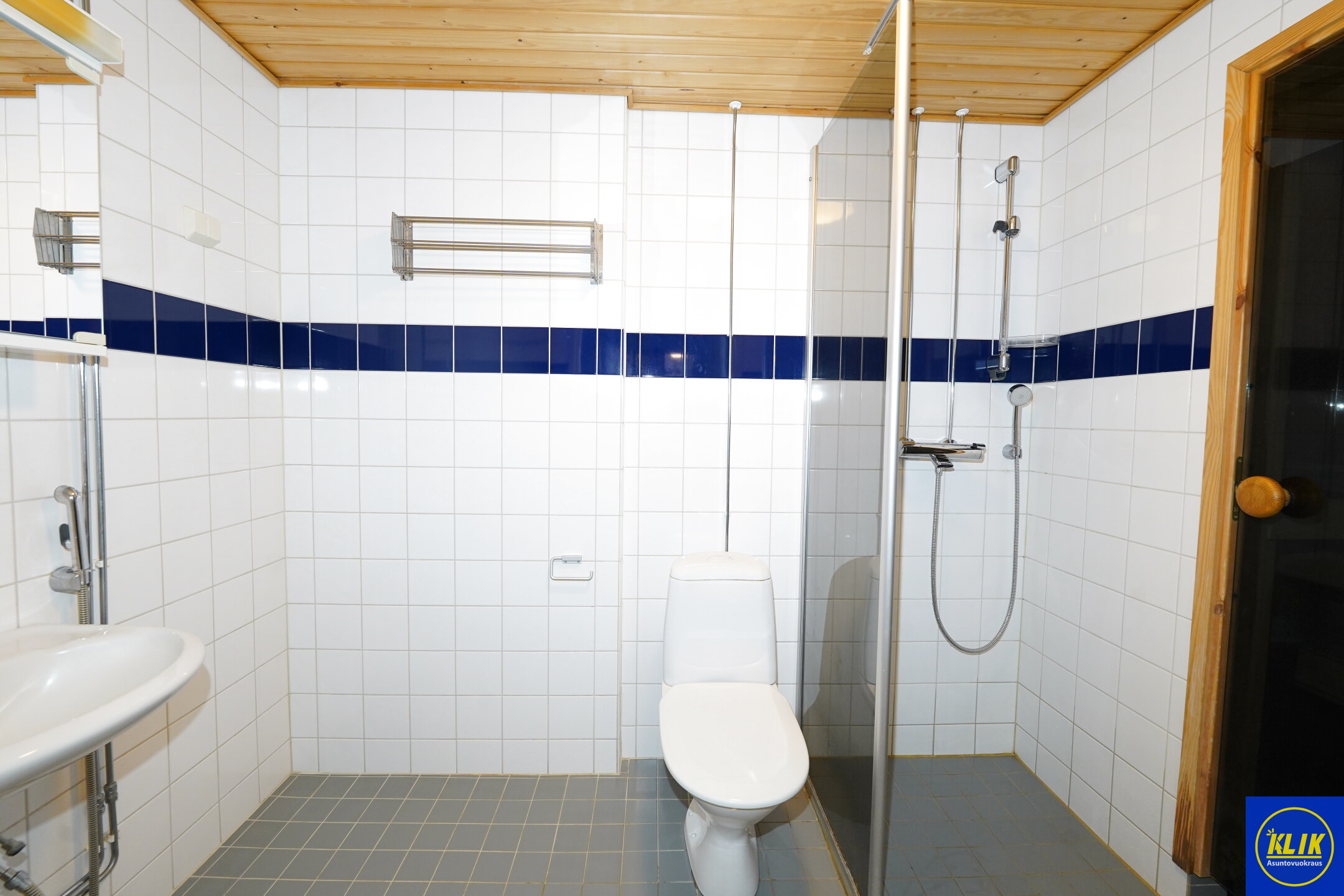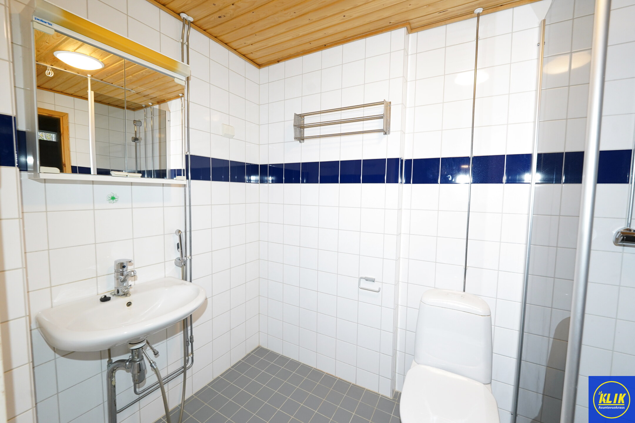laattalattia; laattaseinä, peilikaappi, suihku; suihkuseinä, pesukonevalmius, kylpyhuoneessa lattialämmitys; oma sauna; kylpyhuoneessa avattava ikkuna