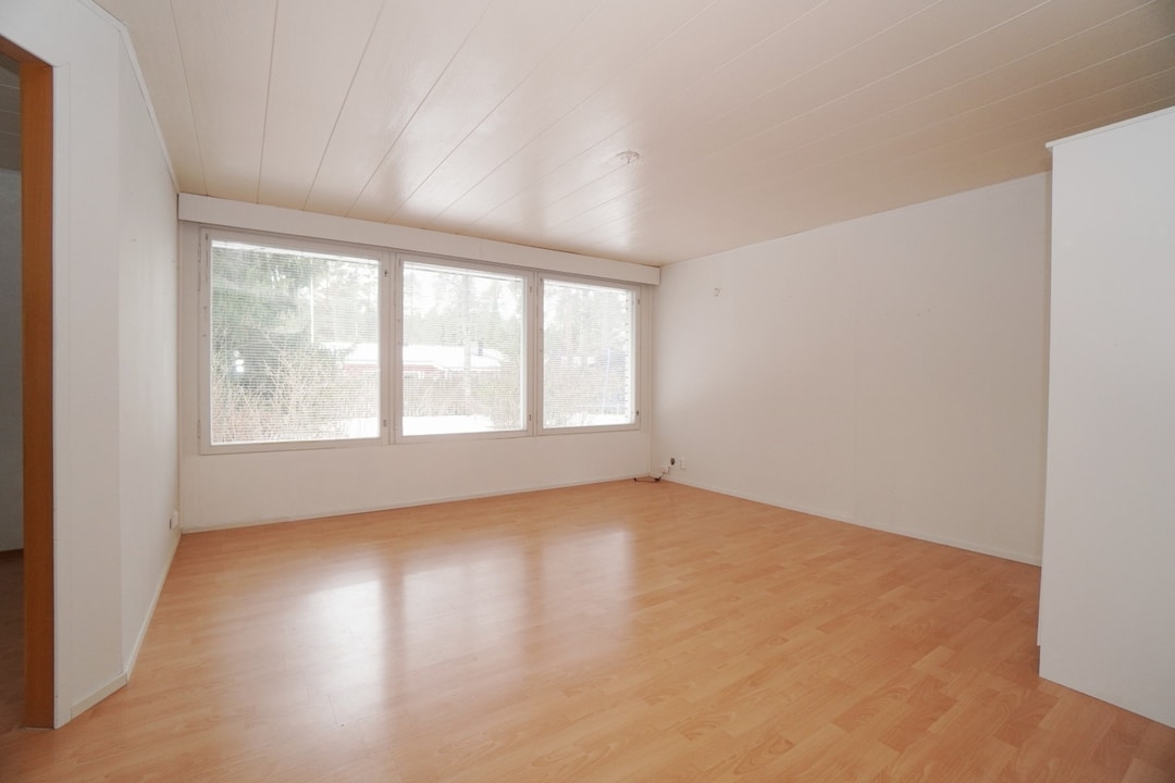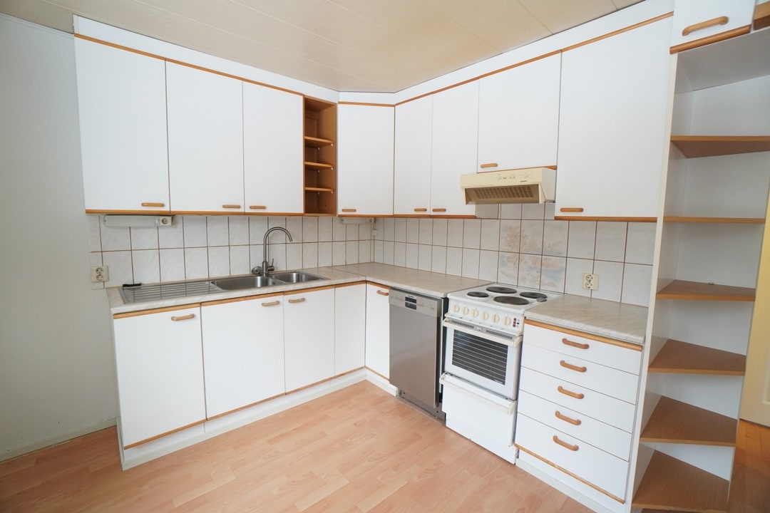 Tästä kodista löytyy iso olohuone, keittiö, makuuhuoneet sekä kaakeloitu kylpyhuone. Eteinen on avara ja peiliovikaapistot tuovat hyvin säilytystilaa. Keittiössä on varustuksena mm. astianpesukone ja jääkaappipakastin tullaan vielä uusimaan ennen uutta asukasta. Keittiöstä on kulku terassille.