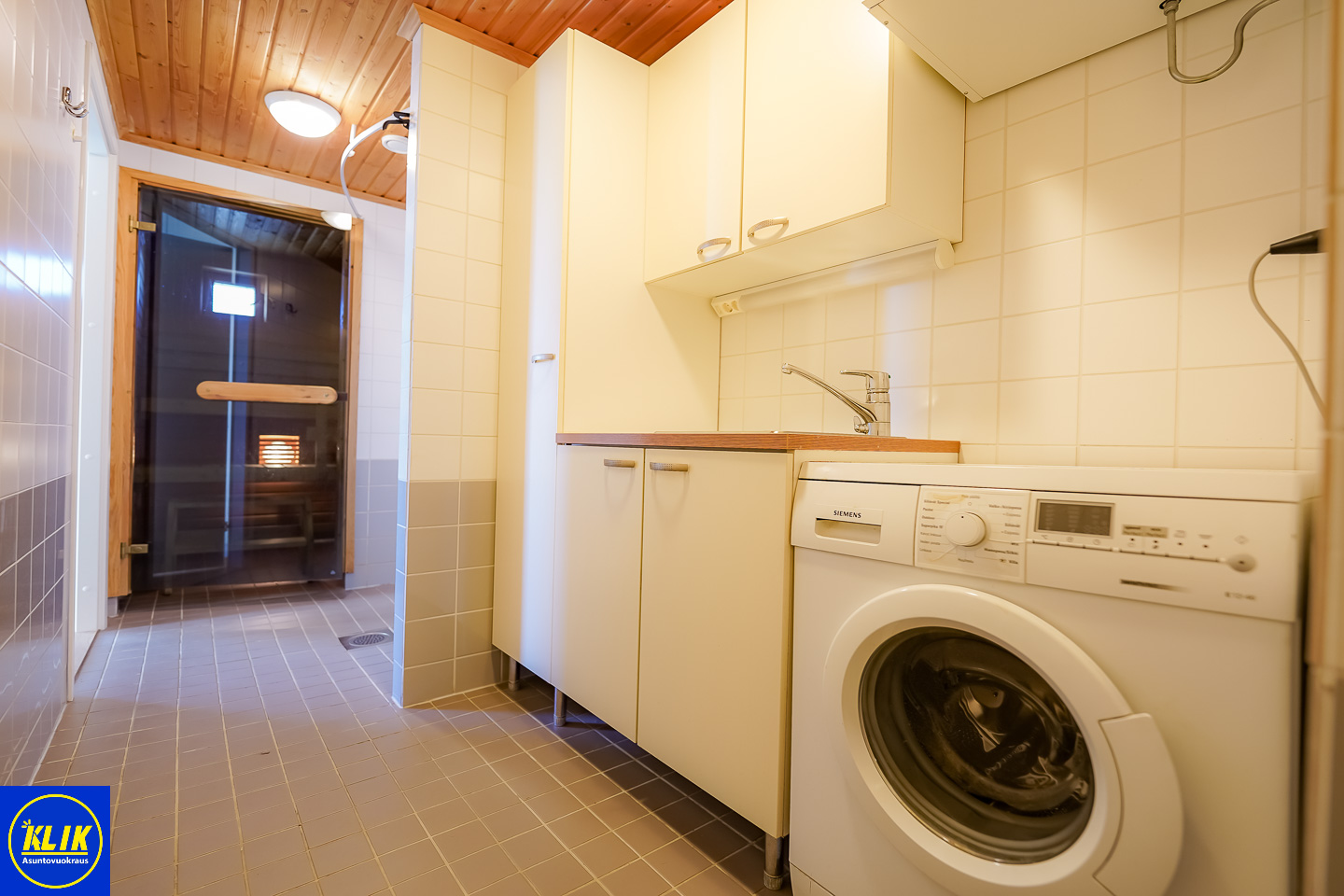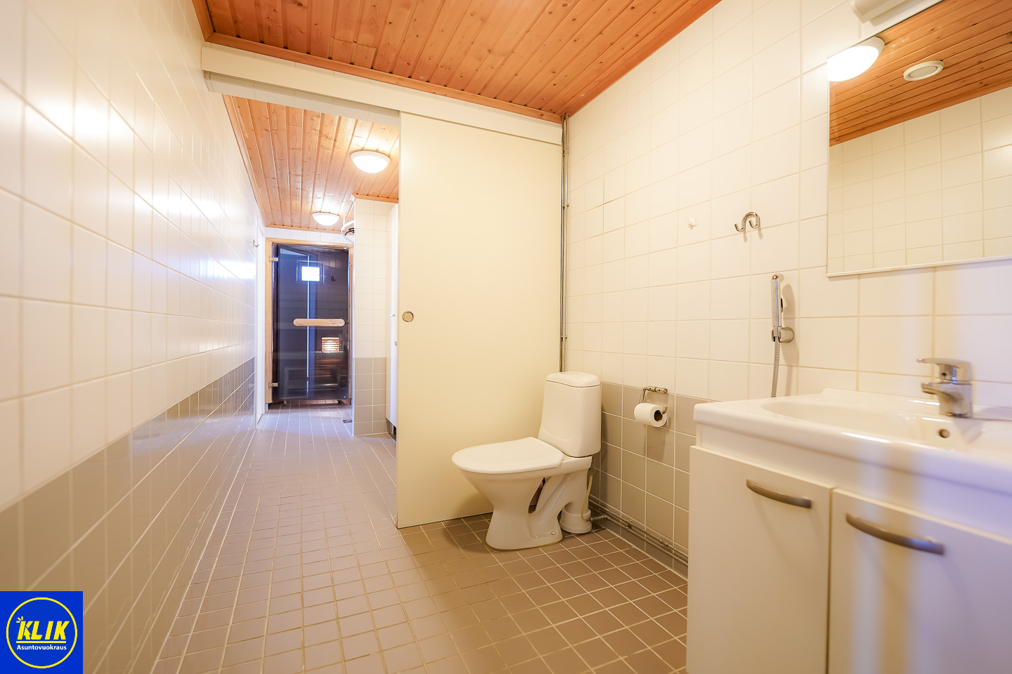 laattalattia; laattaseinä, allaskaappi; peilikaappi; muuta säilytystilaa WC:ssä, suihku, pesukonevalmius, lattialämmitys; sauna; avattava ikkuna
