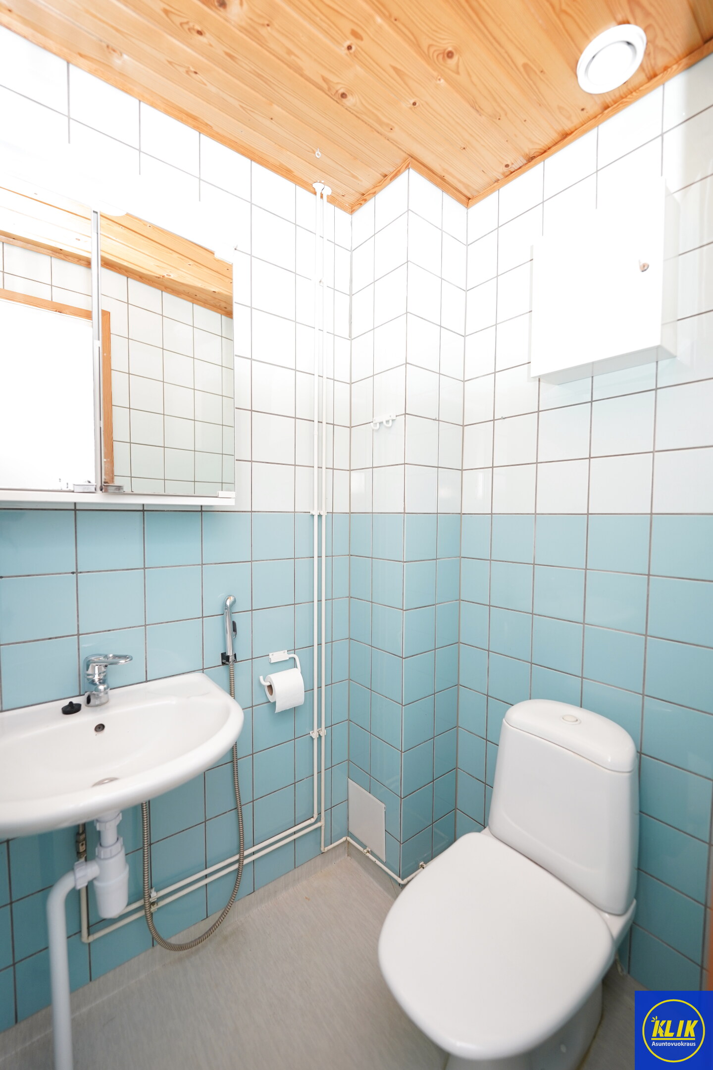 muovimatto; laattaseinä, , peilikaappi; korkea kaappi, suihku, , pesukonevalmius, oma sauna; kylpyhuoneessa avattava ikkuna