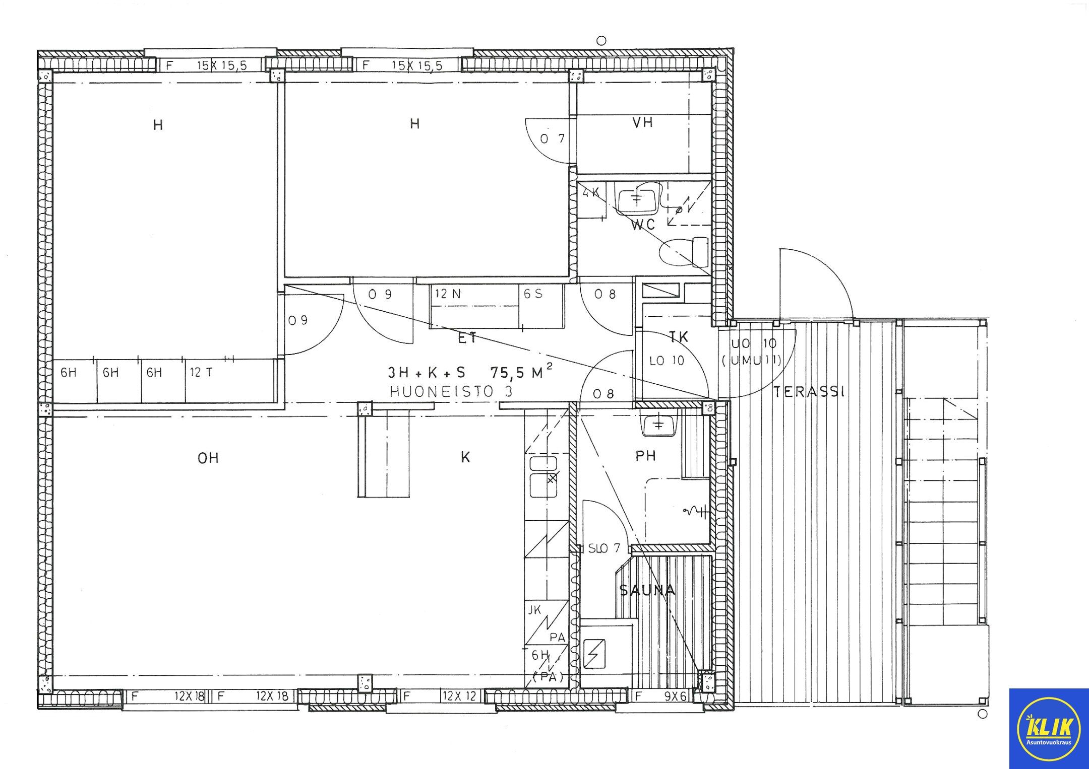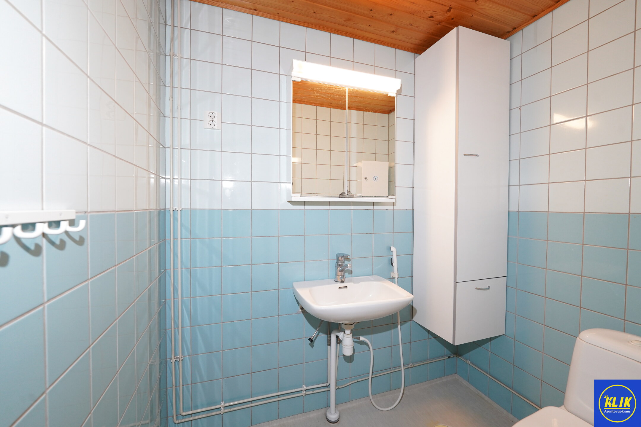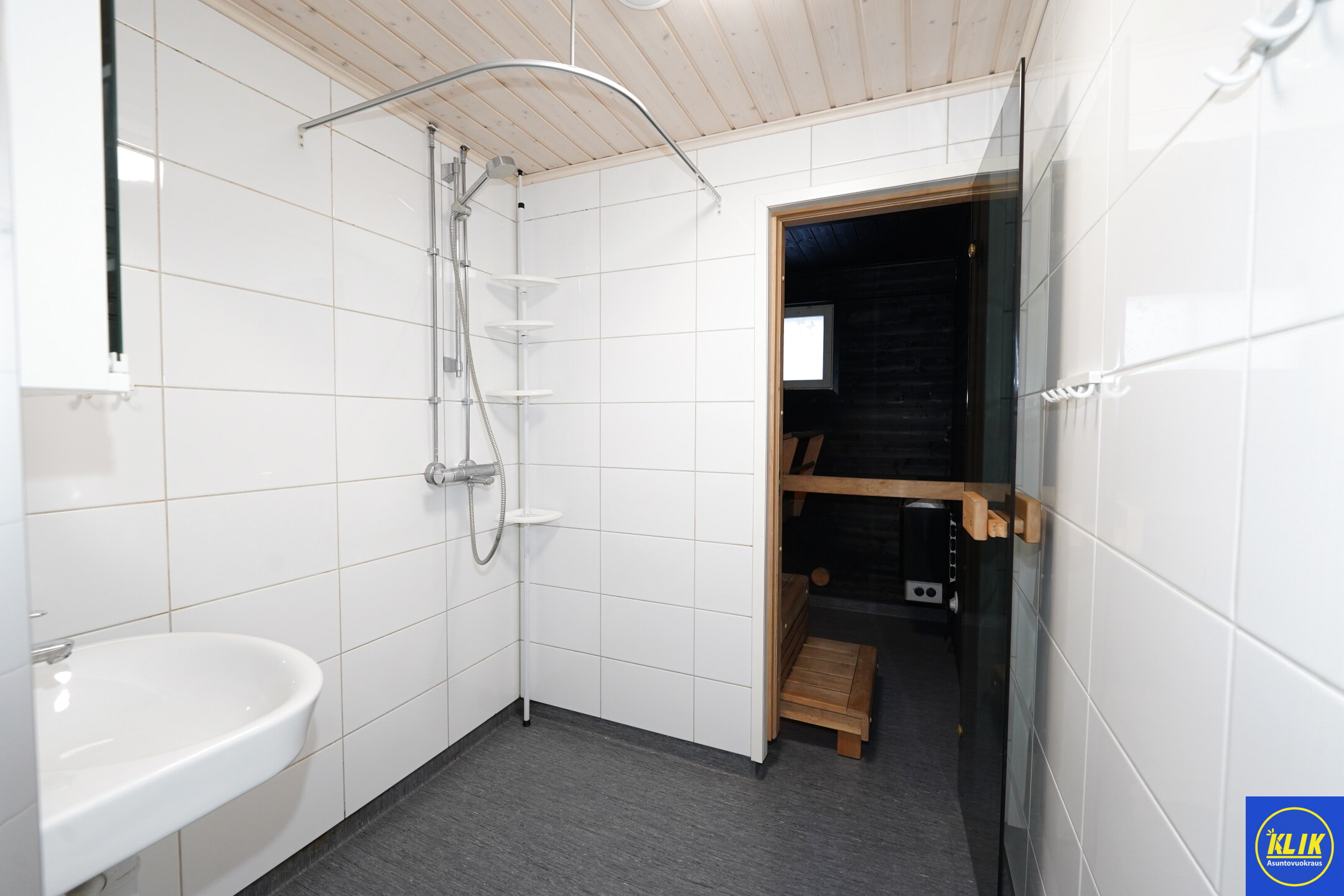 muovimatto; laattalattia; laattaseinä, peilikaappi; muuta säilytystilaa WC:ssä, suihku, pesukonevalmius, kylpyhuoneessa lattialämmitys; oma sauna; kylpyhuoneessa avattava ikkuna