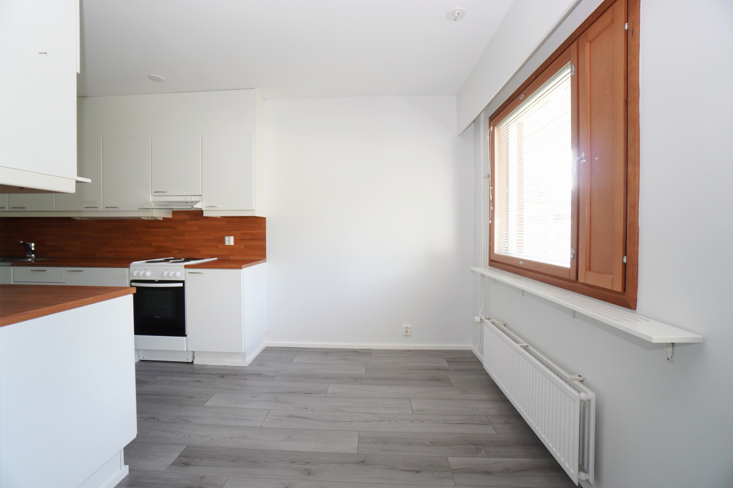 erillinen keittiölaminaattitasot keittiössä, sähköliesi; liesituuletin, pesukoneliitos, jääkaappipakastin, tilaa isolle ruokapöydälle; paljon kaappitilaa; paljon työskentelytilaa; mikrohylly