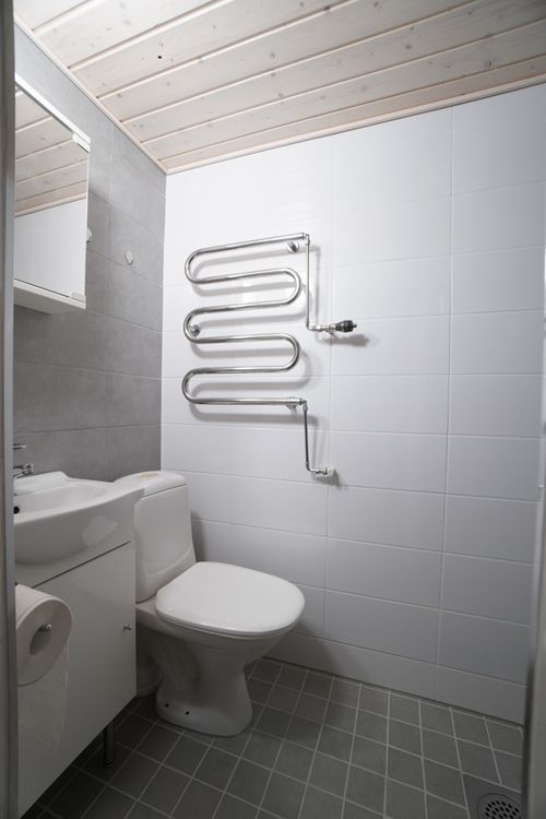 laattalattia; laattaseinä, allaskaappi; peilikaappi, suihku; suihkuseinä, lattialämmitys; rättipatteri