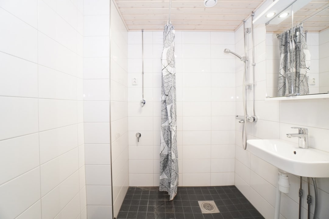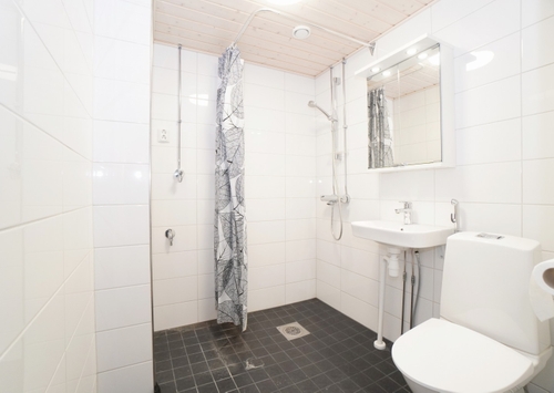 laattalattia; laattaseinä, peilikaappi, suihku, pesukonevalmius, lattialämmitys