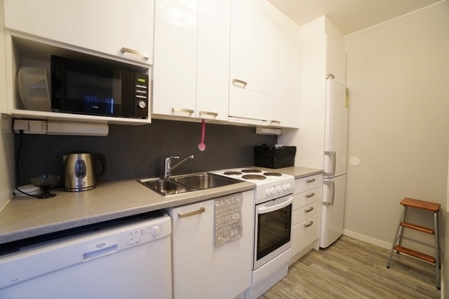 Asunnossa on kauttaaltaan siistit pinnat, lattiat laminaattia ja seinät maalattu / tapetoitu. Pohjaratkaisu on asunnossa toimiva ja kaikelle löytyy hyvät tilat. Hyvän kokoiseen makuuhuoneeseen saat sängyn ja makuuhuoneessa on kaappitilaa.