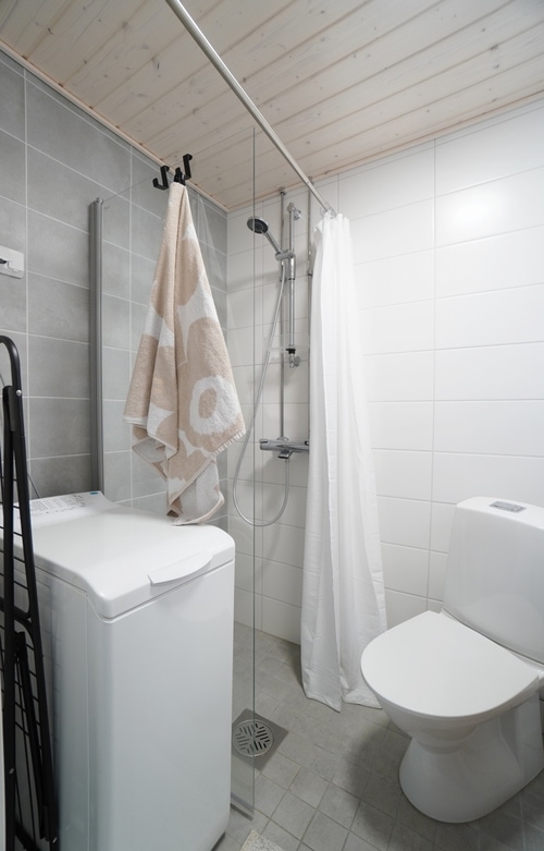 laattalattia; laattaseinä, allaskaappi; muuta säilytystilaa WC:ssä, suihku; suihkuseinä, pesukonevalmius, lattialämmitys