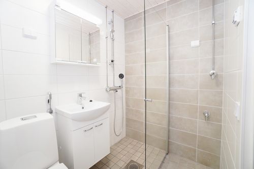 Keittiö ei paljon uudelle häpeä, se on hiljattain täysin remontoitu. Keittiössä on kivasti kaapistoja sekä astianpesukone valmiina. Täysin uusitussa kylpyhuoneessa on paikka pyykinpesukoneelle sekä mukavuutta tuo lattialämmitys. Alkovissa on hyvä paikka sängylle.