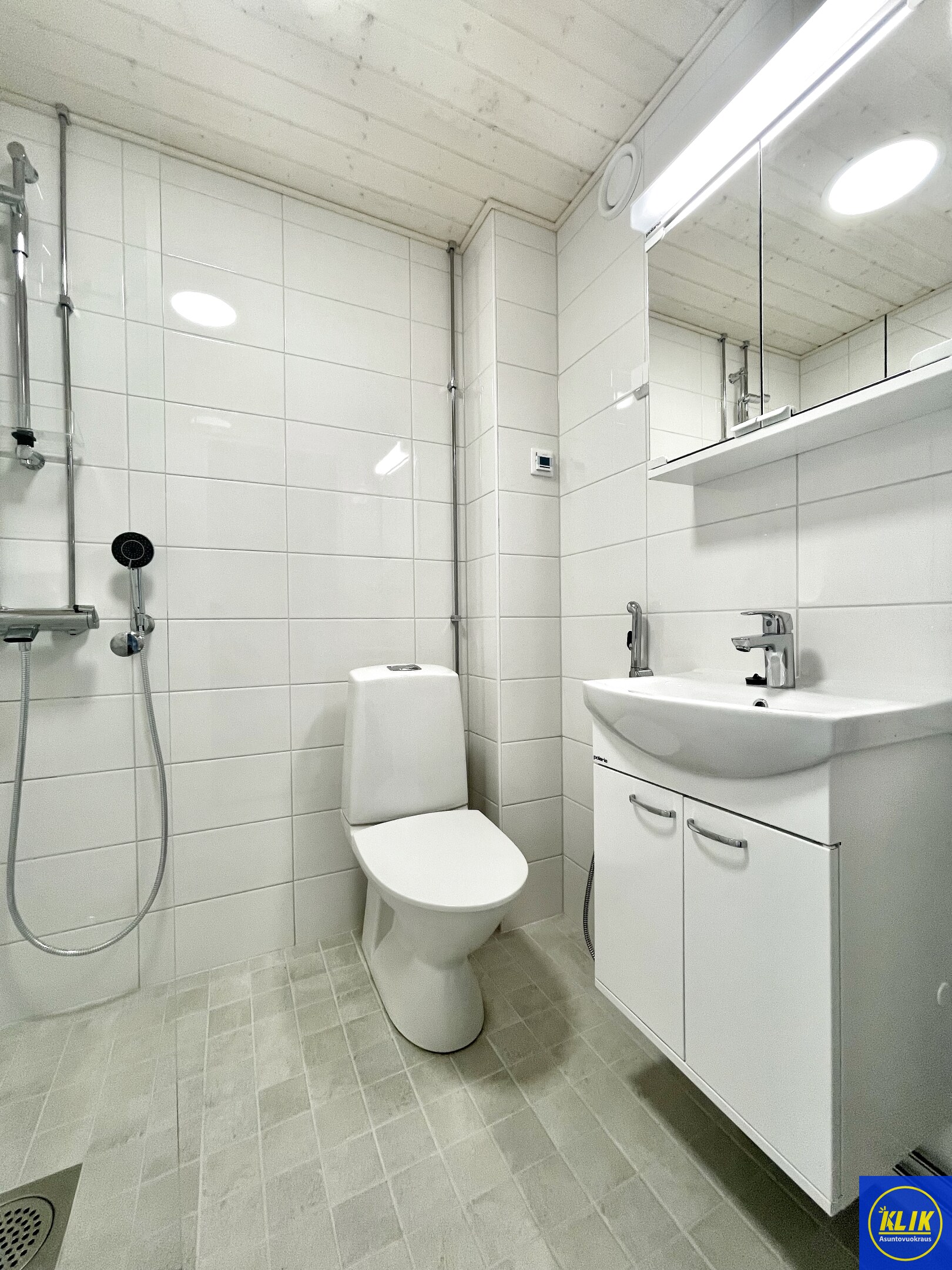 laattalattia; laattaseinä, allaskaappi; peilikaappi, suihku; suihkuseinä, pesukonevalmius