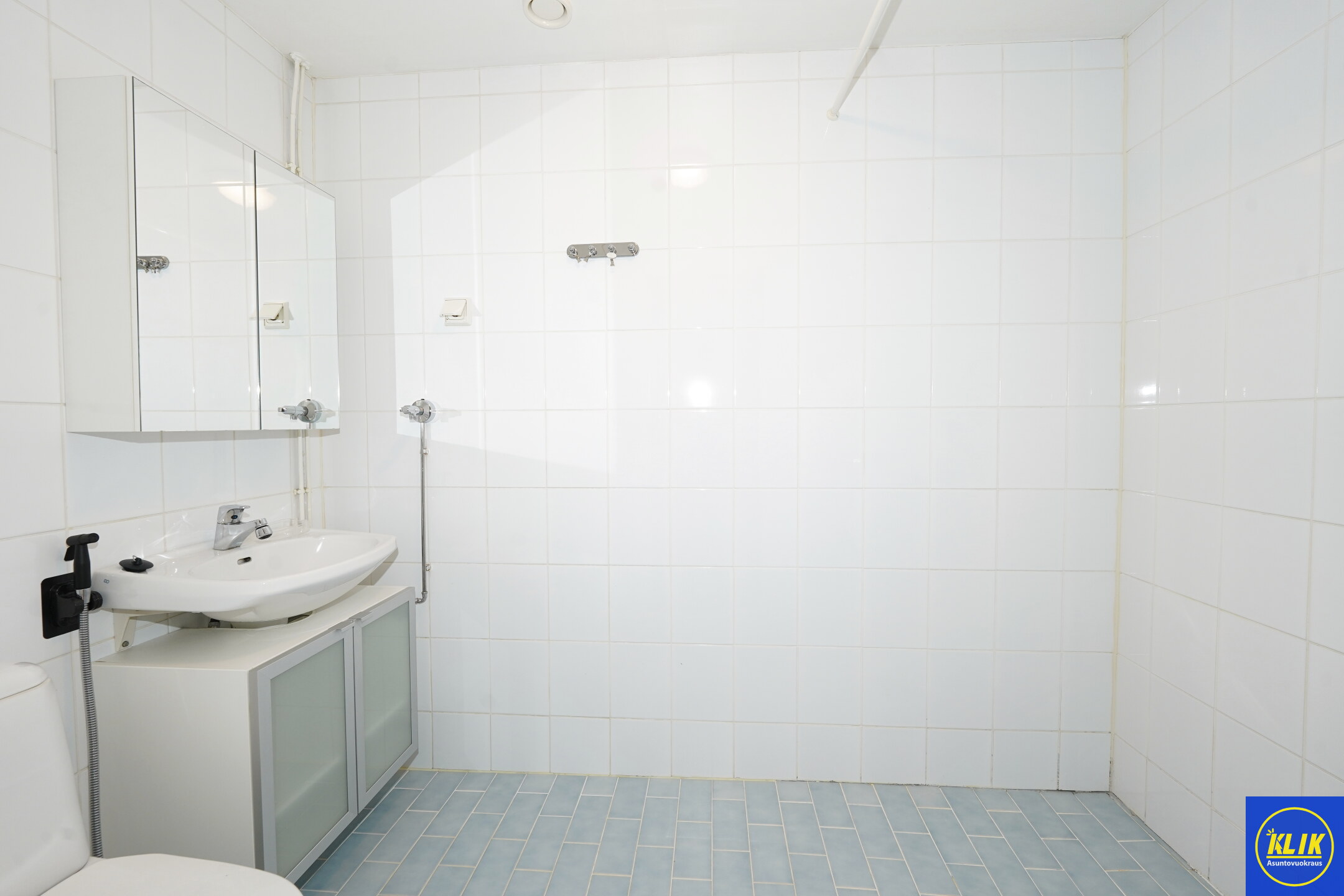 laattalattia; laattaseinä, , allaskaappi; peilikaappi, suihku, , pesukonevalmius; taloyhtiössä pesutupa,