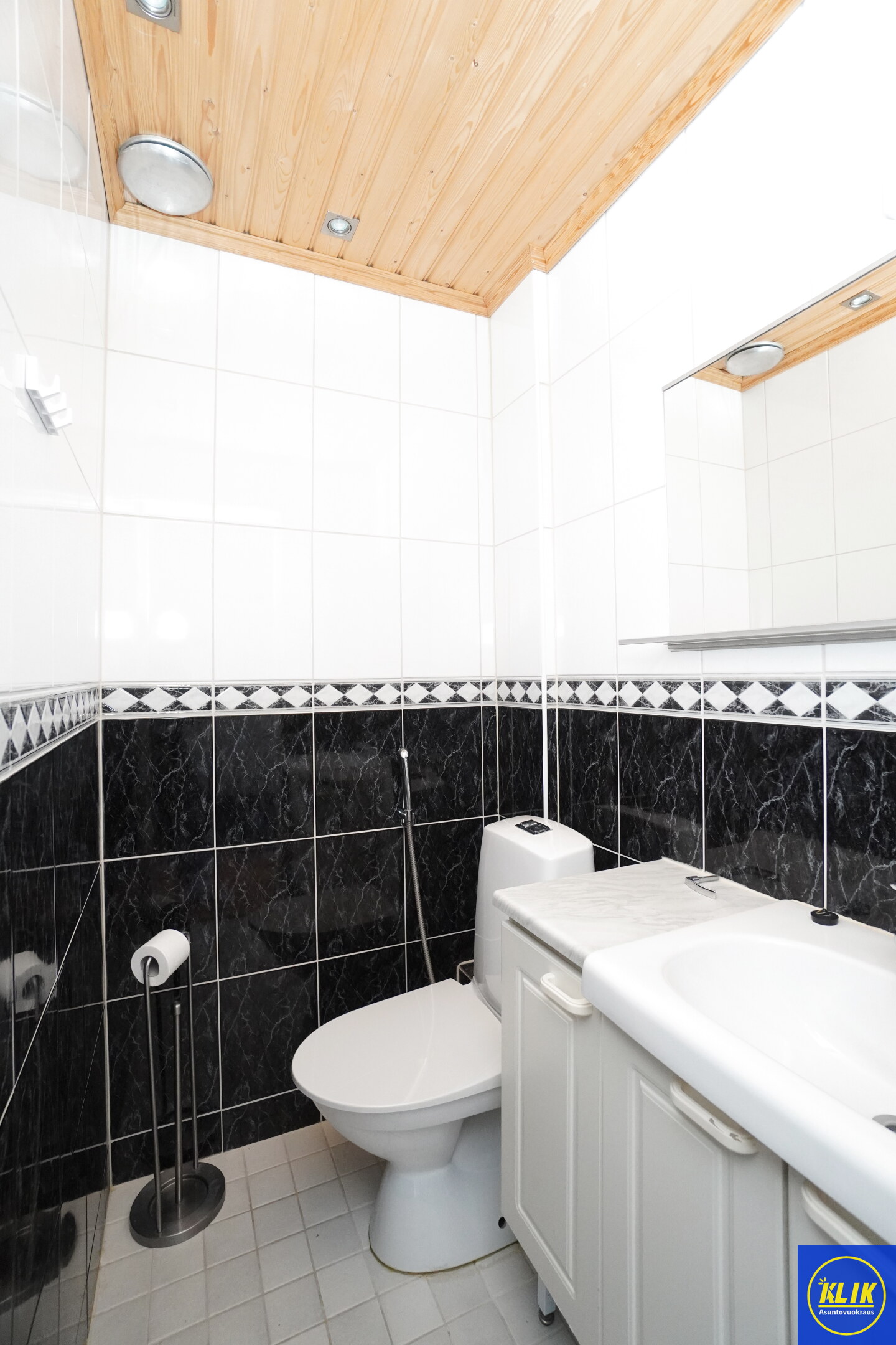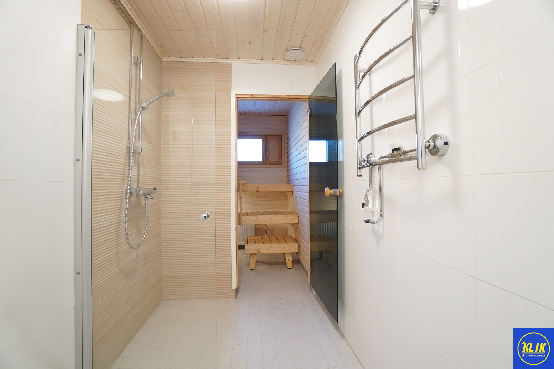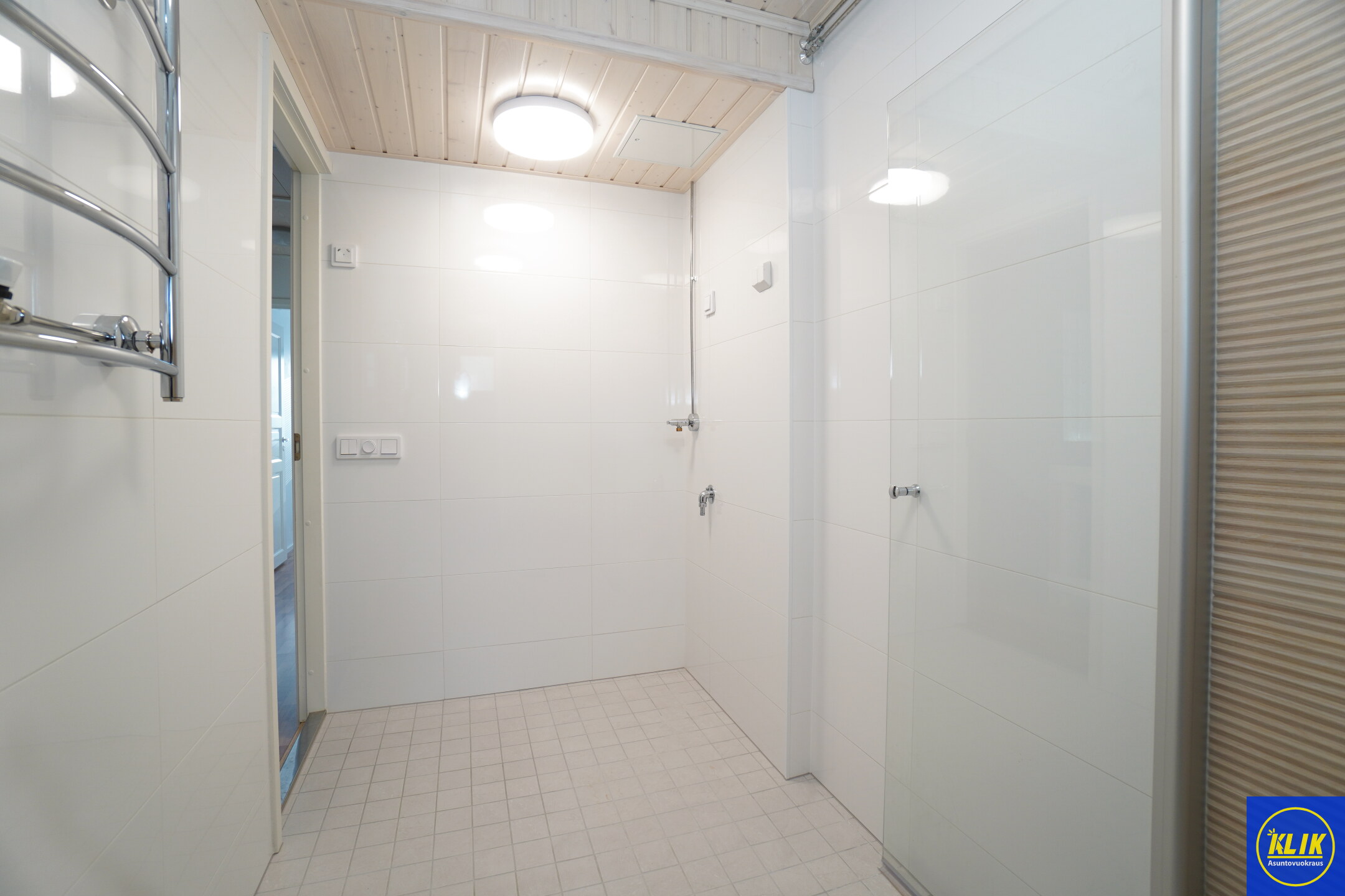 laattalattia; laattaseinä, asunnossa kaksi WC:tä, allaskaappi; peilikaappi, suihku; suihkuseinä, , pesukonevalmius, kylpyhuoneessa lattialämmitys; oma sauna; kylpyhuoneessa avattava ikkuna; kylpyhuoneessa kuivauspatteri