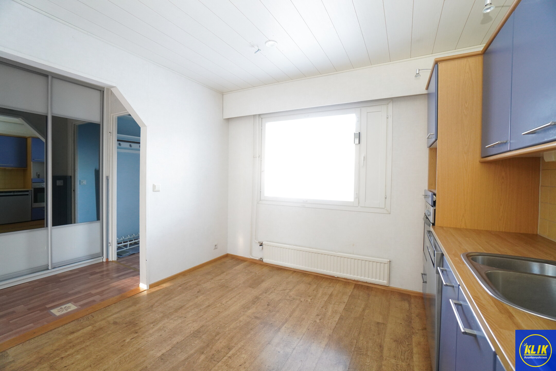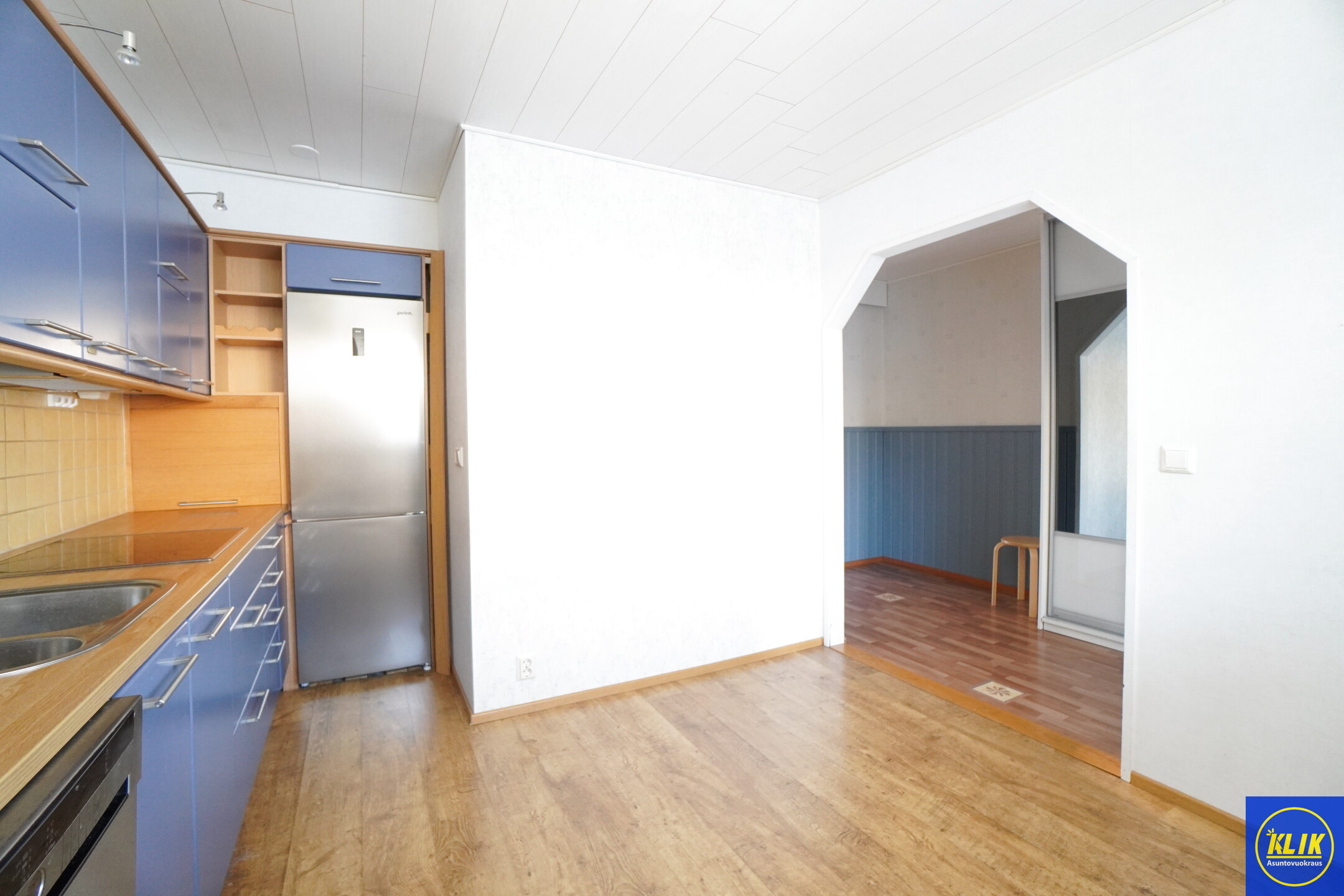 erillinen keittiölaminaattitasot keittiössä, keraaminen- tai induktioliesi; keittotaso ja kalusteuuni; liesituuletin, astianpesukone (60cm), jääkaappipakastin, paljon kaappitilaa; paljon työskentelytilaa; mikrohylly