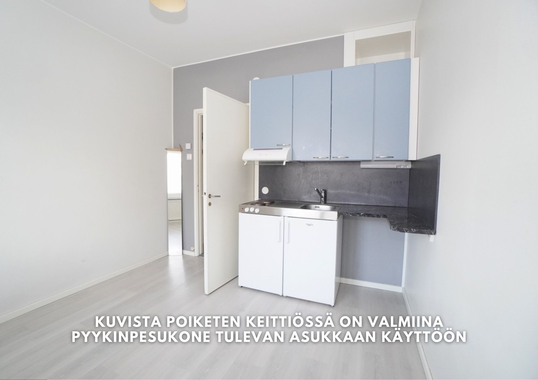 avokeittiöterästasot keittiössä, sähköliesi, pesukoneliitos, jääkaappi, , , , , , ,