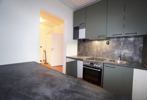 Keittiötä on juuri remontoitu ja astianpesukoneelle on valmis paikka.