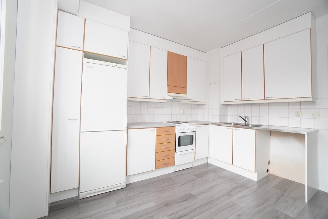 Toisen kerroksen hyväkuntoinen läpitalon asunto. Koko asuntoon on laitettu uusi harmaa laminaatti ja seinät on maalattu. Keittiössä on paljon kaappitilaa ja vaaleat pinnat. Astianpesukoneelle on liitännät ja valmis paikka, joten sellaisen saa asennettua helposti. Keittiöön mahtuu vaivatta ruokailuryhmäkin. Olohuone on tilava ja sen yhteydessä on parveke maan tasalla. Makuuhuoneissa on kaapistot ja lisää säilytystilaa löytyy eteiskaapeista. Kylpyhuone on tilava ja sinne saa laitettua suurenkin pesukoneen.