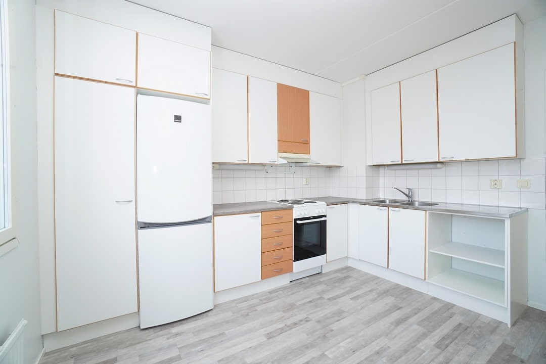 Toisen kerroksen läpitalon asunto rauhalliselta lapsiystävälliseltä alueelta. Koko asuntoon on laitettu uusi harmaa laminaatti ja seinät on maalattu.