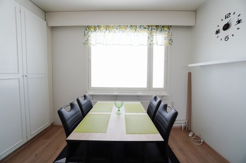 Hieno asunto ylimmästä kerroksesta hyvällä pohjaratkaisulla. Asunnossa on siistit vaaleat pinnat ja tilavat huoneet. Keittiössä on reilusti kaapistoja ja mm. astianpesukone. Tilaan mahtuu hyvin ruokaryhmä ja vaikka lisäkaapistoja tarvittaessa.