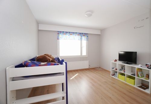 Molemmat makuuhuoneet ovat reilun kokoisia ja kalusteille on hyvin tilaa. Lisäksi asunnossa on erillinen vaatehuone.
