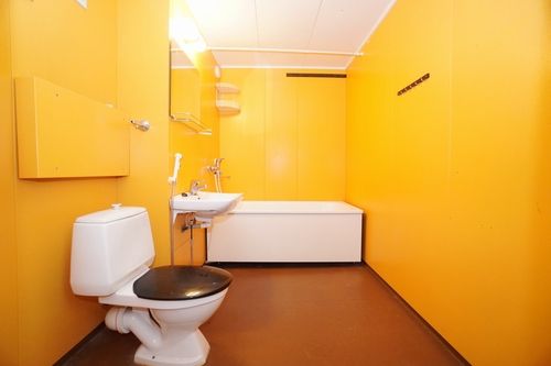Kylpyhuoneessa on liitännät pyykinpesukoneelle.