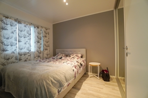 Hienon kylpyhuoneen yhteydessä oma sauna ja hyvin tilaa vaikka pesutornillekin. Tilavassa makuuhuoneesta löytyy koko seinän mittainen liukuovikaapisto ja lisäksi eteisessä toinen liukuovikaapisto. Molemmat liukuovikaapistot ovat varusteltu peiliovilla. Asunnon lämmityksestä pitää huolen termostaateista säädettävä lattialämmitys, joten seinien vierustatkin ovat tarvittaessa käytettävissä.