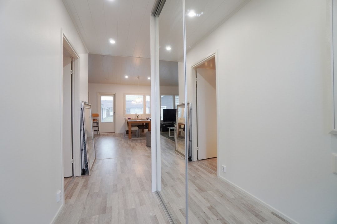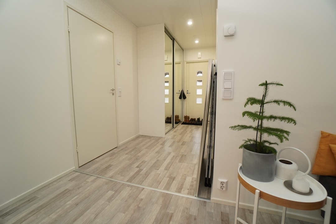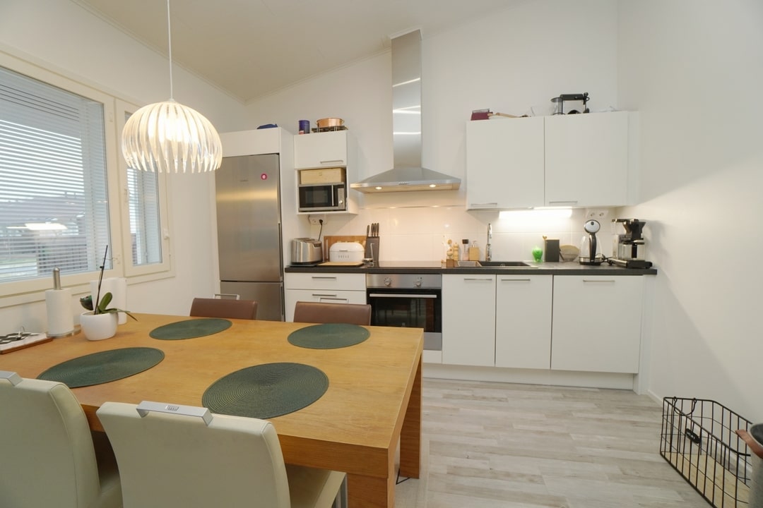 Nyt on tarjolla erittäin siisti maalämmöllä lämpiävä rivitalo kaksio hyvällä ja avaralla pohjaratkaisulla. Keittiöstä löytyy kaikki tarpeellinen mm. integroitu astianpesukone, erillinen keittotaso ja kalusteuuni. Keittiö ja olohuone ovat samassa toimivassa tilassa. Tilan tuntua ja avaruutta asunnossa tuo normaalia korkeampi huonekorkeus. Olohuoneesta on käynti tilavalle terassille.