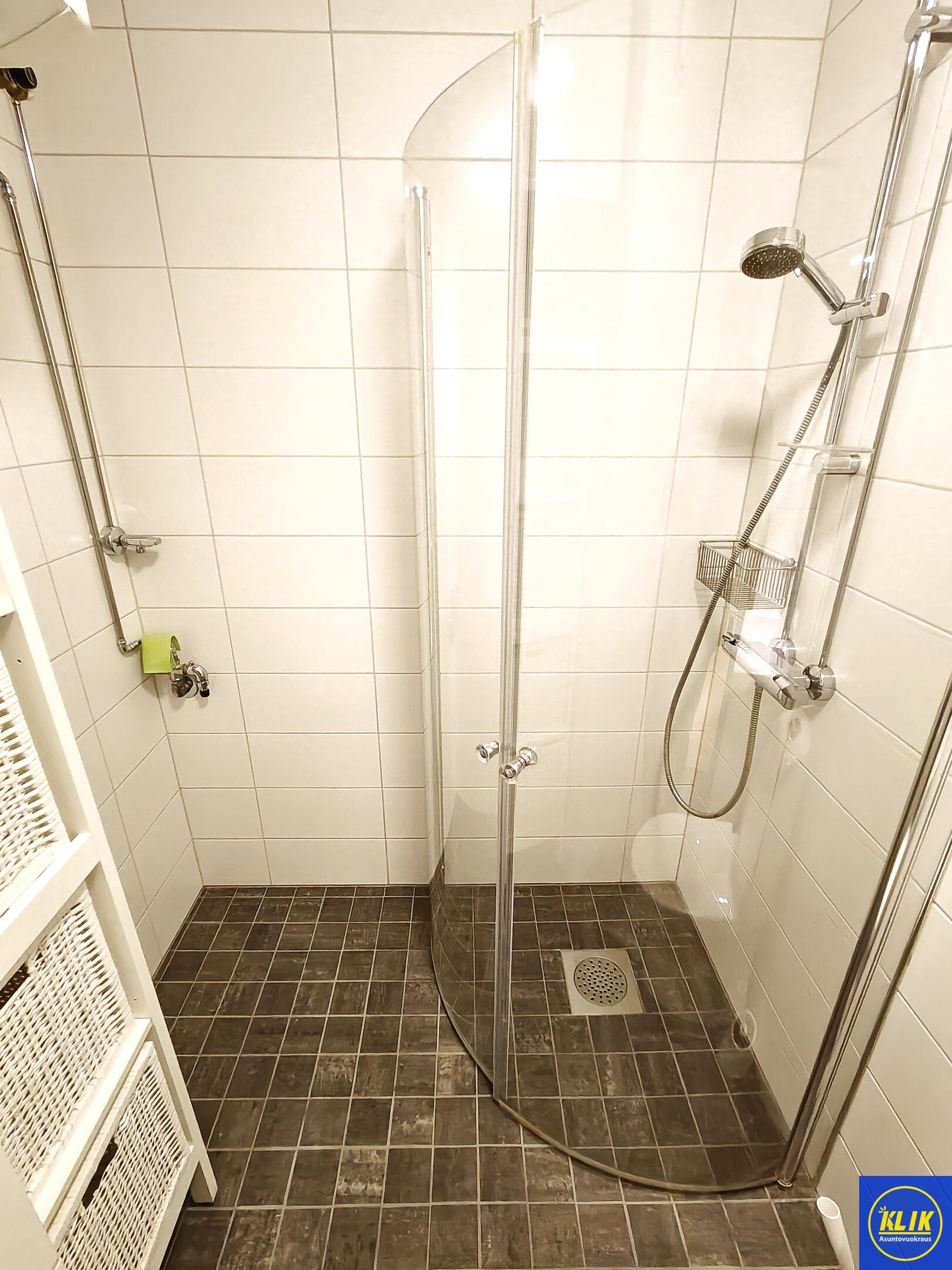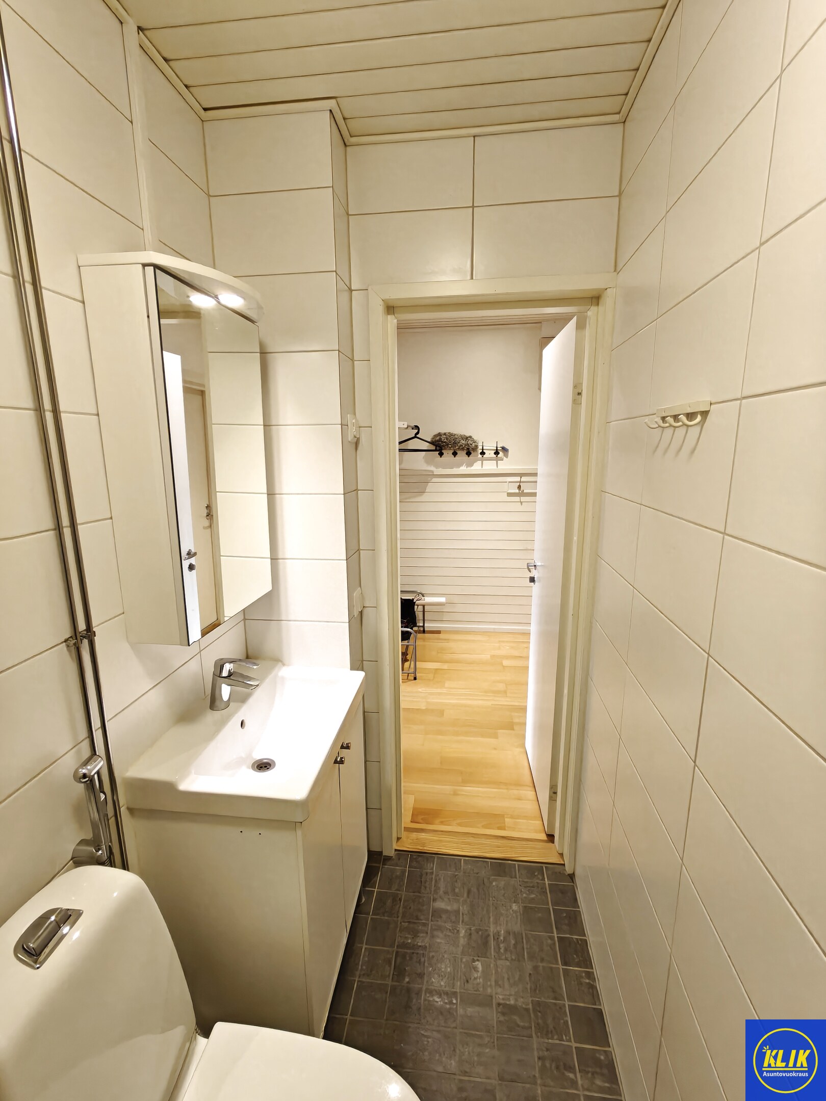 laattalattia; laattaseinä, , allaskaappi; peilikaappi, suihkuseinä, , pesukonevalmius, taloyhtiössä sauna