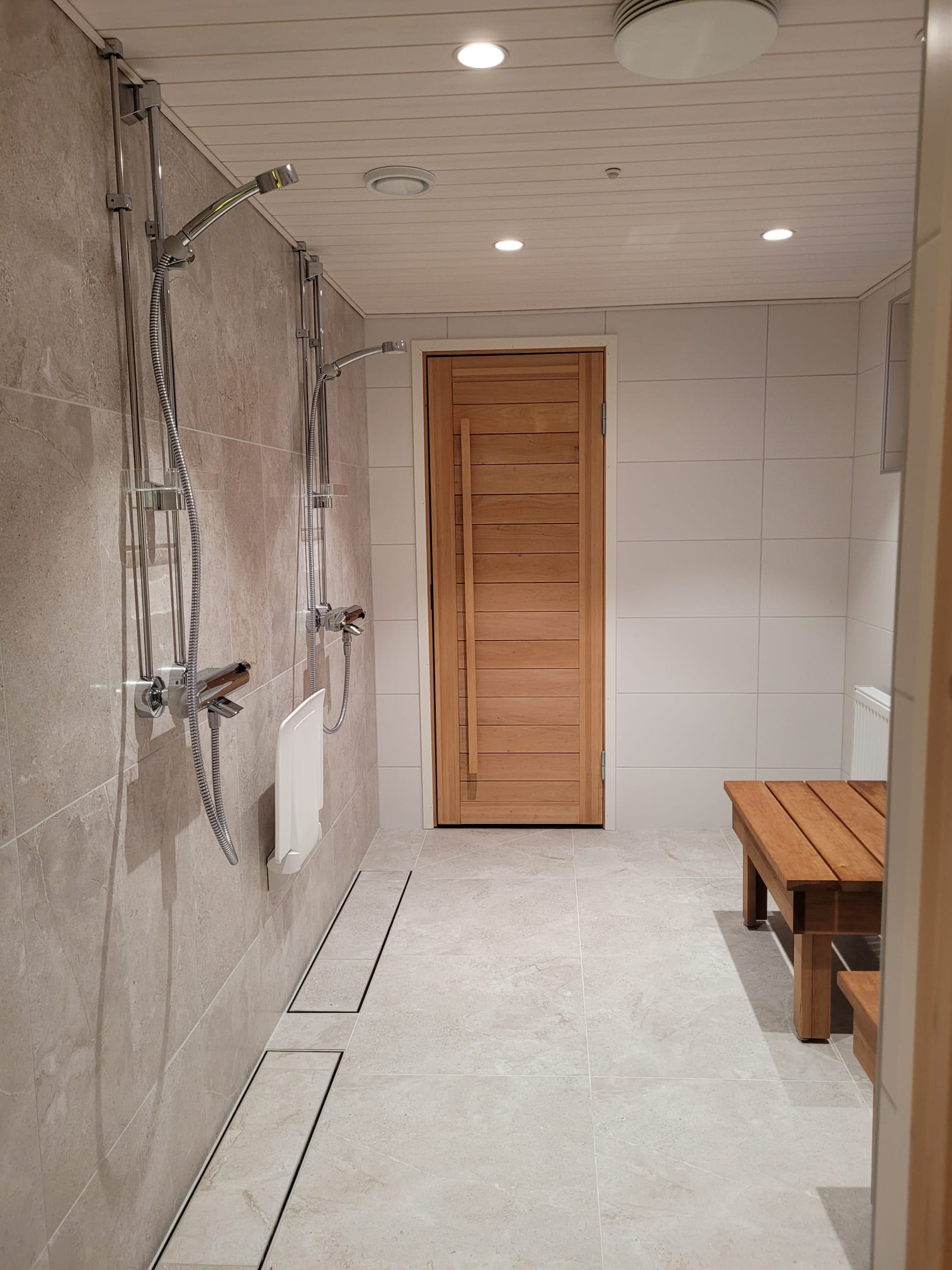 laattalattia; laattaseinä, , peilikaappi, suihku; suihkuseinä, , pesukonevalmius, kylpyhuoneessa lattialämmitys; taloyhtiössä sauna