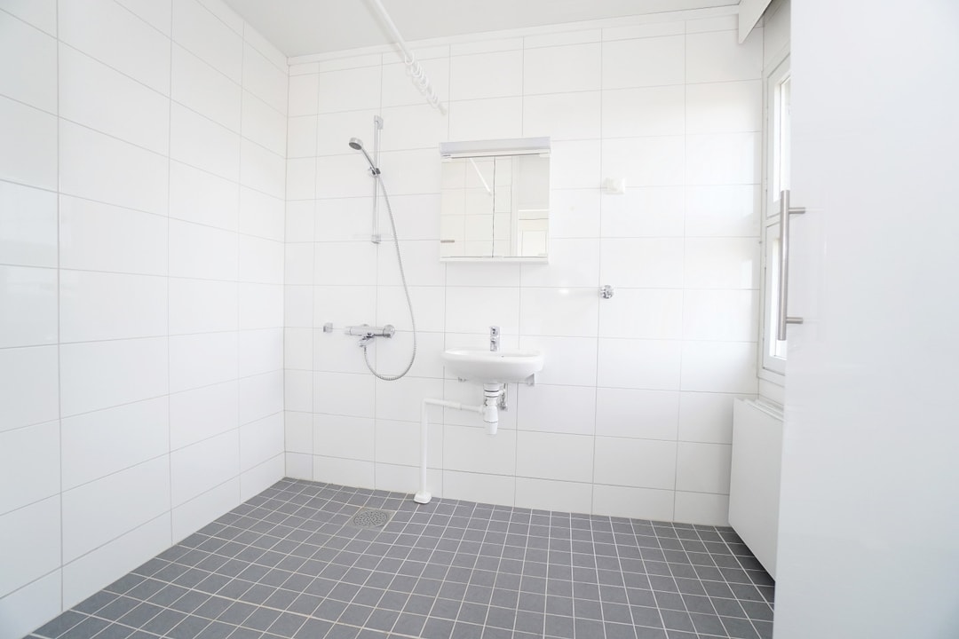 laattalattia; laattaseinä, myös erillinen WC, peilikaappi, suihku, pesukonevalmius, avattava ikkuna