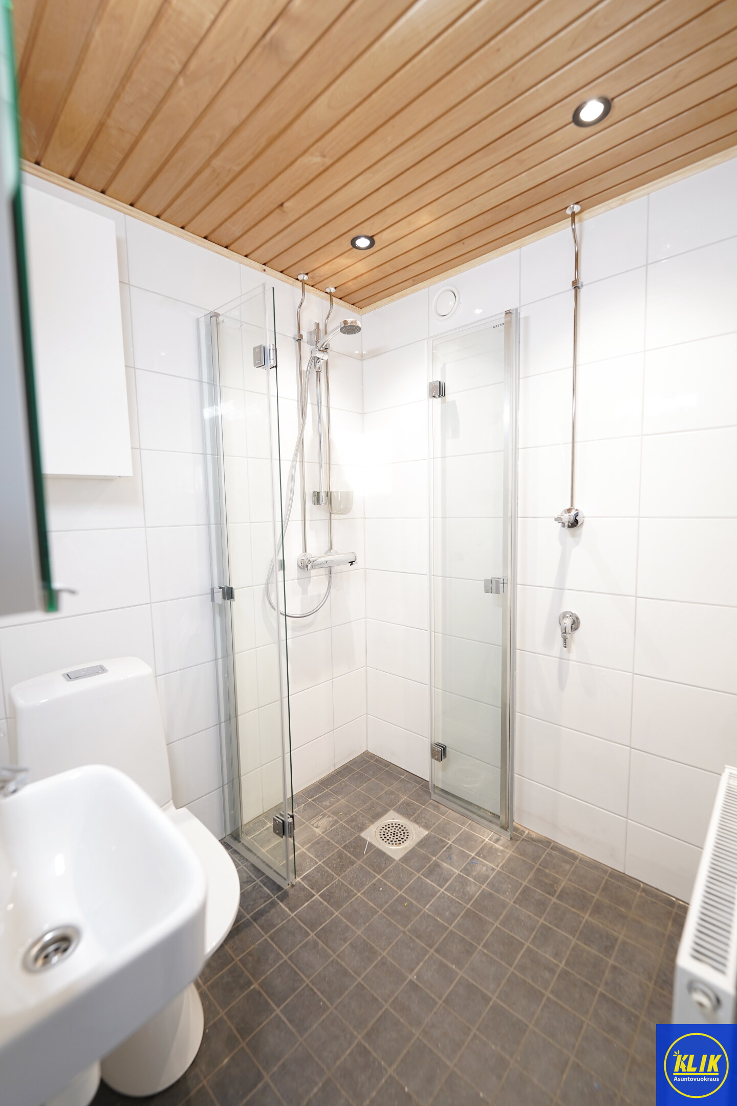 laattalattia; laattaseinä, , peilikaappi; muuta säilytystilaa WC:ssä, suihku; suihkuseinä, , pesukonevalmius, kylpyhuoneessa lattialämmitys; taloyhtiössä sauna