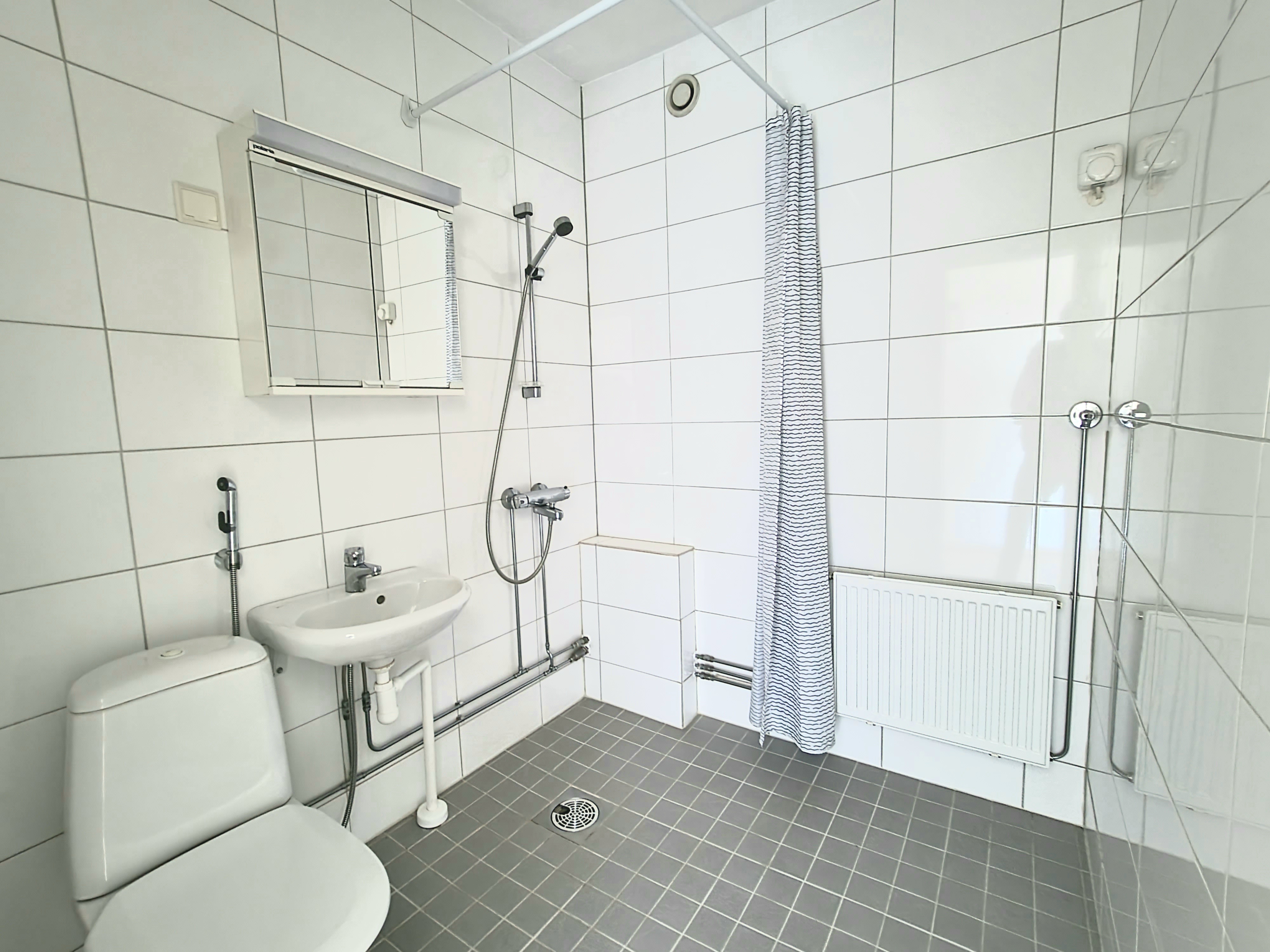 laattalattia; laattaseinä, allaskaappi; peilikaappi, suihku; suihkuseinä, pesukonevalmius, lattialämmitys