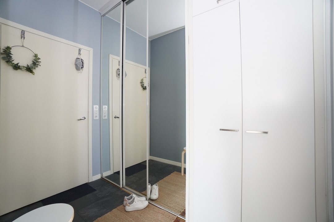 Hiljattain remontoidussa asunnossa vinyyli- / laminaattilattia, siistit tapetoidut seinät sekä toimiva pohjaratkaisu. Reilun kokoinen makuuhuone, jossa valmiina yhden seinän mitalta vaatekaappeja. Parisänky mahtuu makuuhuoneeseen.