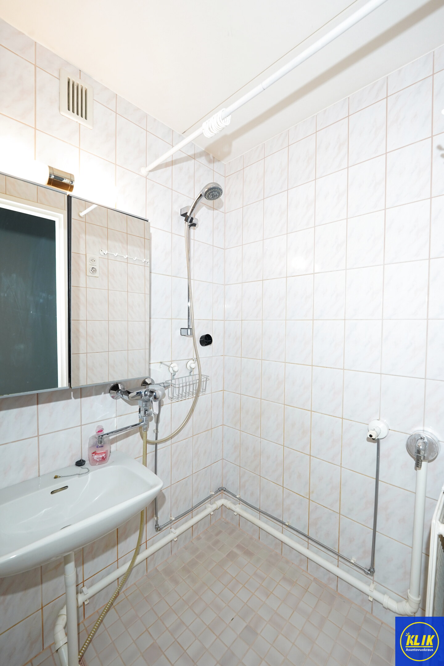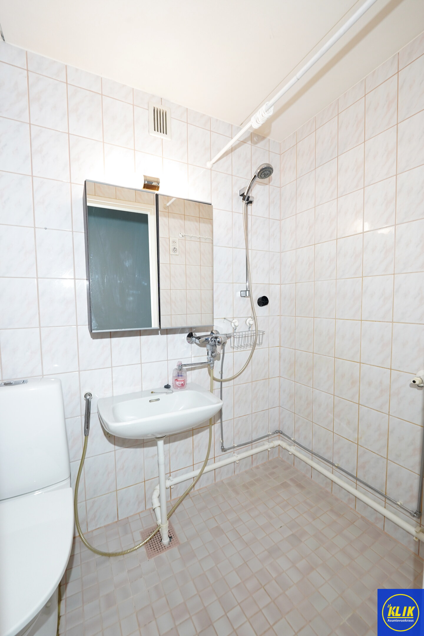 laattalattia; laattaseinä, suihku, pesukonevalmius; taloyhtiössä pesutupa