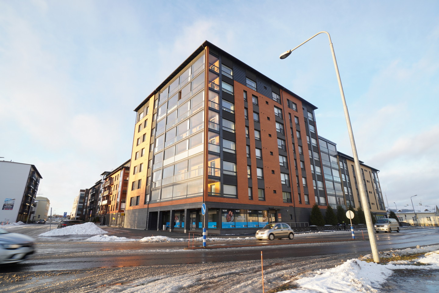 (Toimiston edessä hyvin pysäköintikiekollista pysäköintitilaa.)
